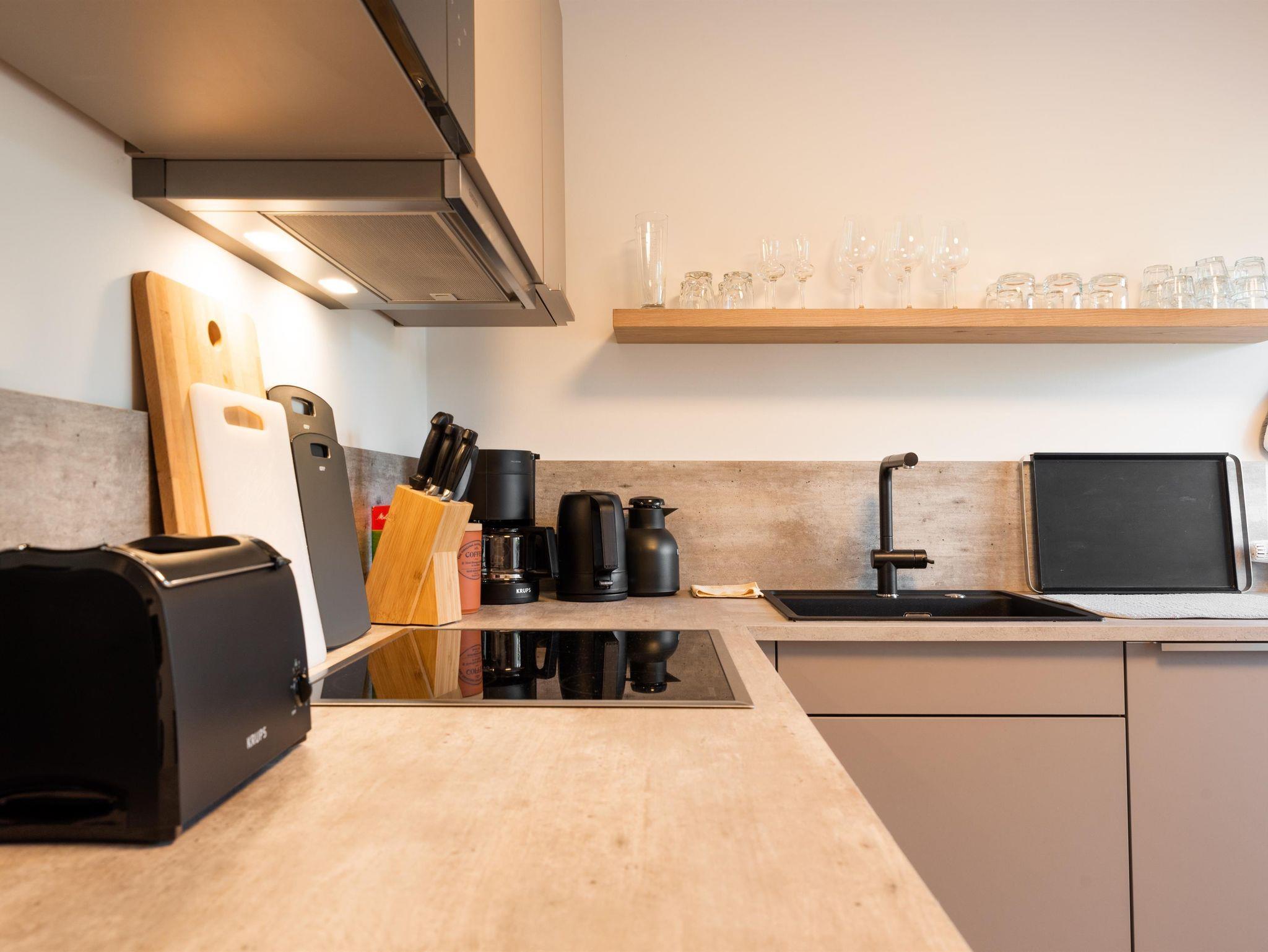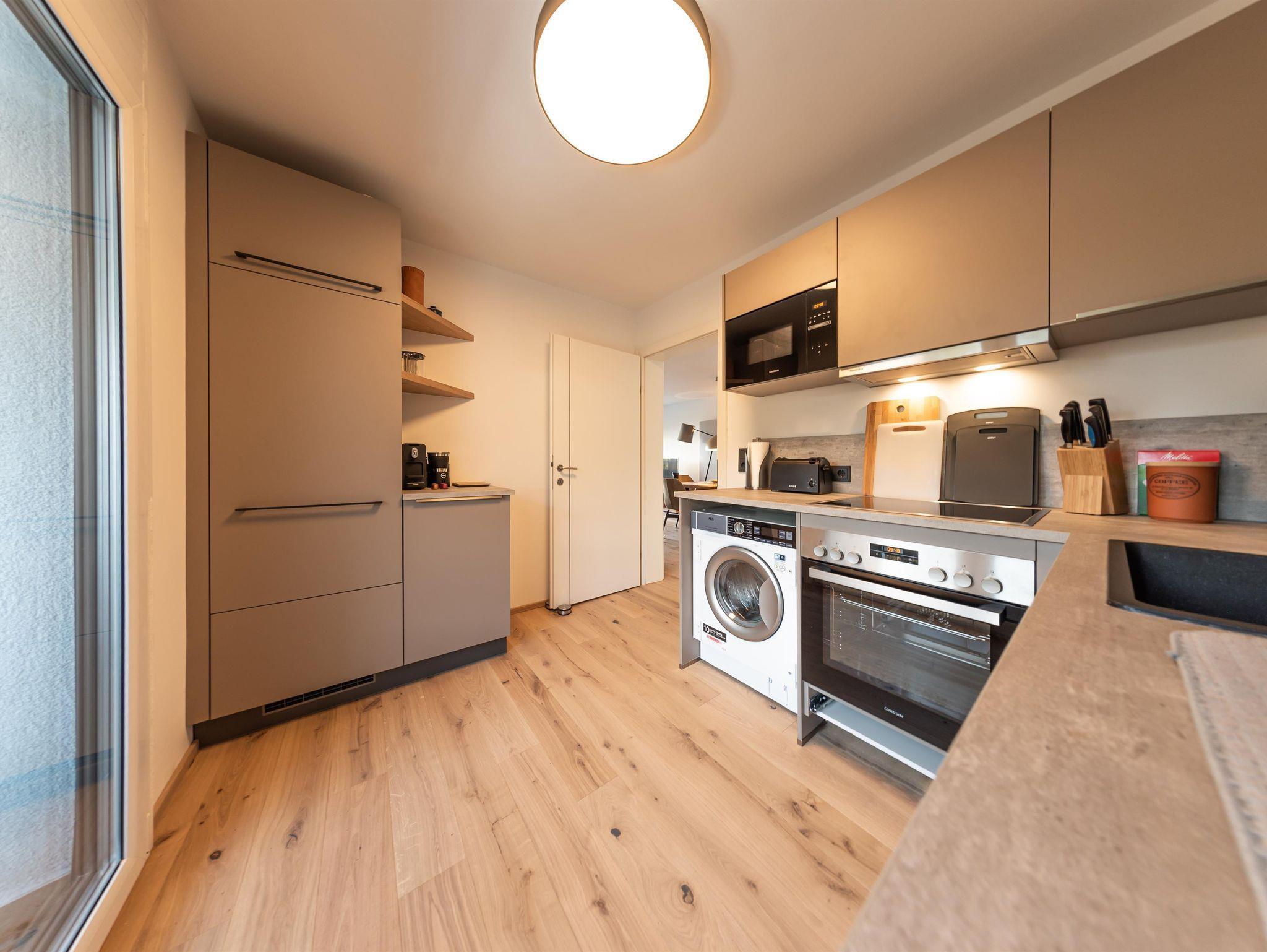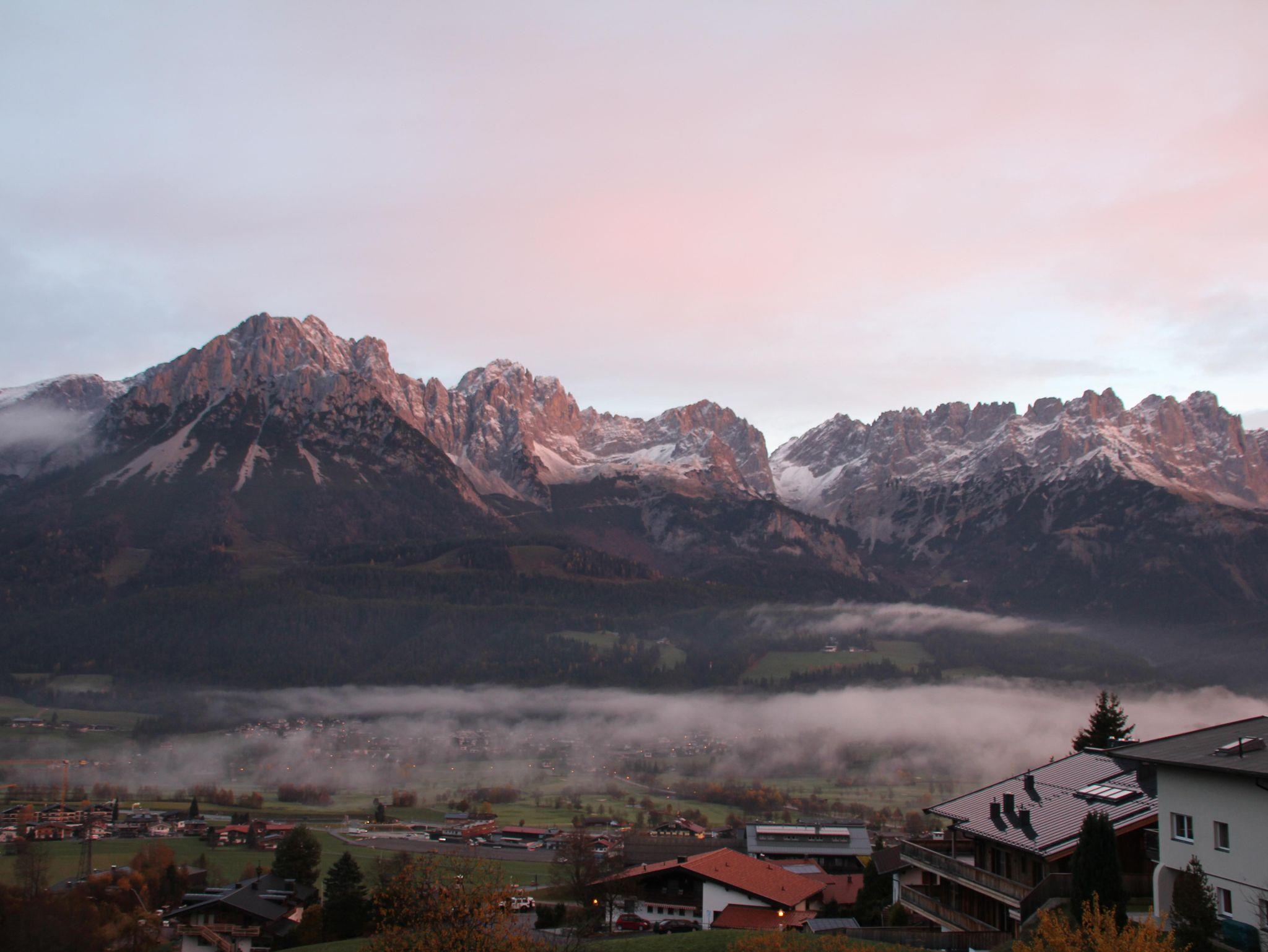 Bis Ende November 22 wurde die Wohnung komplett renoviert, mit Ausnahme vom Bad. Holzdielen wurden überall verlegt. Im Schlafzimmer gibt es jetzt einen Arbeitsplatz, der mit einem Rechner und Tastatur ausgestattet ist fürs Homeoffice; schon beim Aufwachen kann man den super Blick auf den Wilden Kaiser genießen. Im Wohnzimmer steht jetzt eine gemütliche Eckbank. Alle Möbel sind maßgefertigt von einer einheimischen Tischlerei.