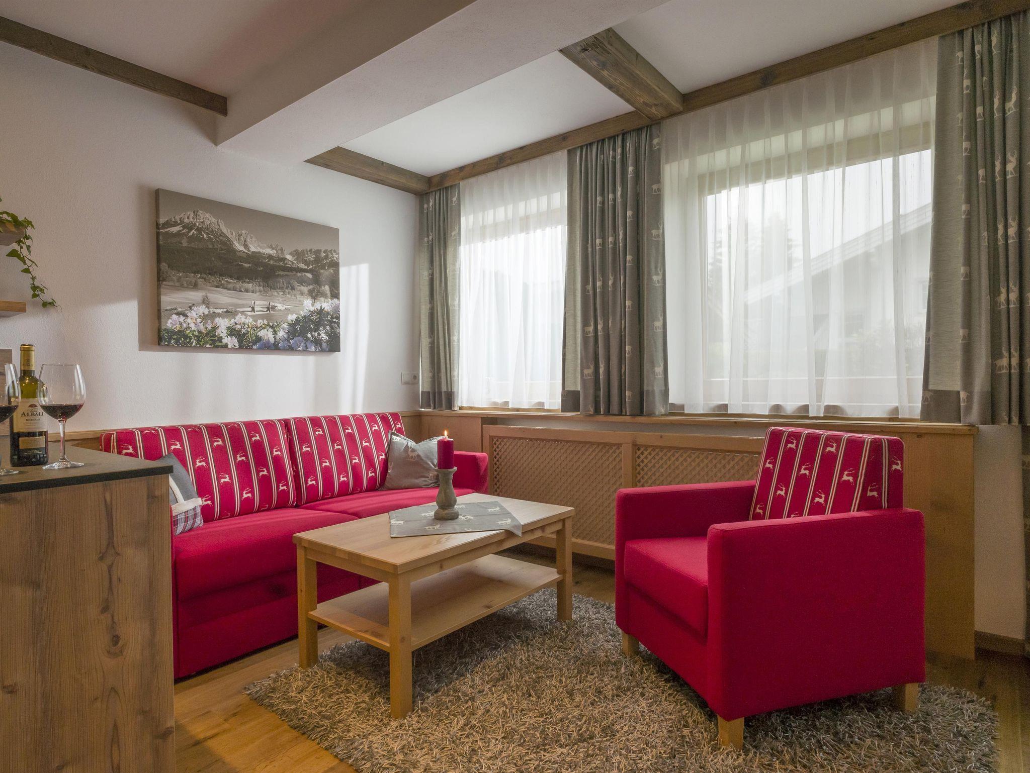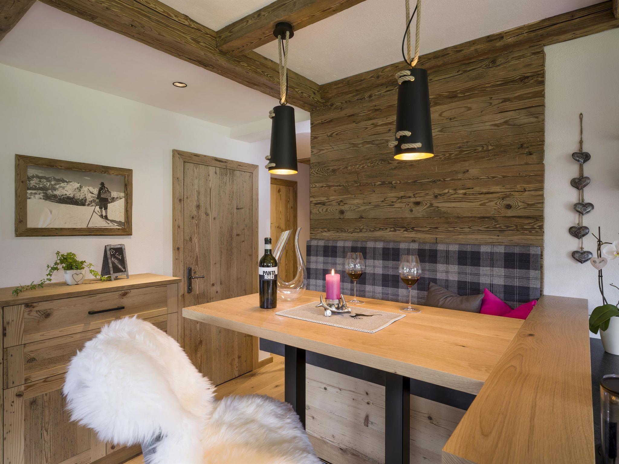 Ihr Luxus-Appartement am Wilden Kaiser. Stilvoll, elegant und charmant präsentiert sich „die Auszeit“ als ihr Urlaubsparadies in Ellmau. Mit viel Altholz und warmen Farbtönen gestaltete Stilelemente beeindrucken Sie im Appartement täglich neu. Das Boxspringbett sorgt für eine wohltuende Nacht, das großzügige Wohnzimmer für den Genuss am Tag. Die Küche ist mit Premium-Markengeräten ausgestattet, zudem sind Geschirrspüler, Mikrowelle, Backofen und ein Kühlschrank mit Gefrierfach bei uns Standard. Eine Nespresso-Maschine steht Ihnen gerne zur Verfügung. Ab einer Woche Aufenthalt bekommen Sie 10 Kapseln zum Genießen und Wohlfühlen dazu. Im neuen Bad mit Fußbodenheizung, sämtlichem Komfort und warmem Altholz wurde eine barrierefreie Dusche installiert. Die Terrasse lädt zu komfortablen Stunden in der Sonne ein - die Liegestühle und Sitzmöglichkeiten sind selbstverständlich für Sie da.