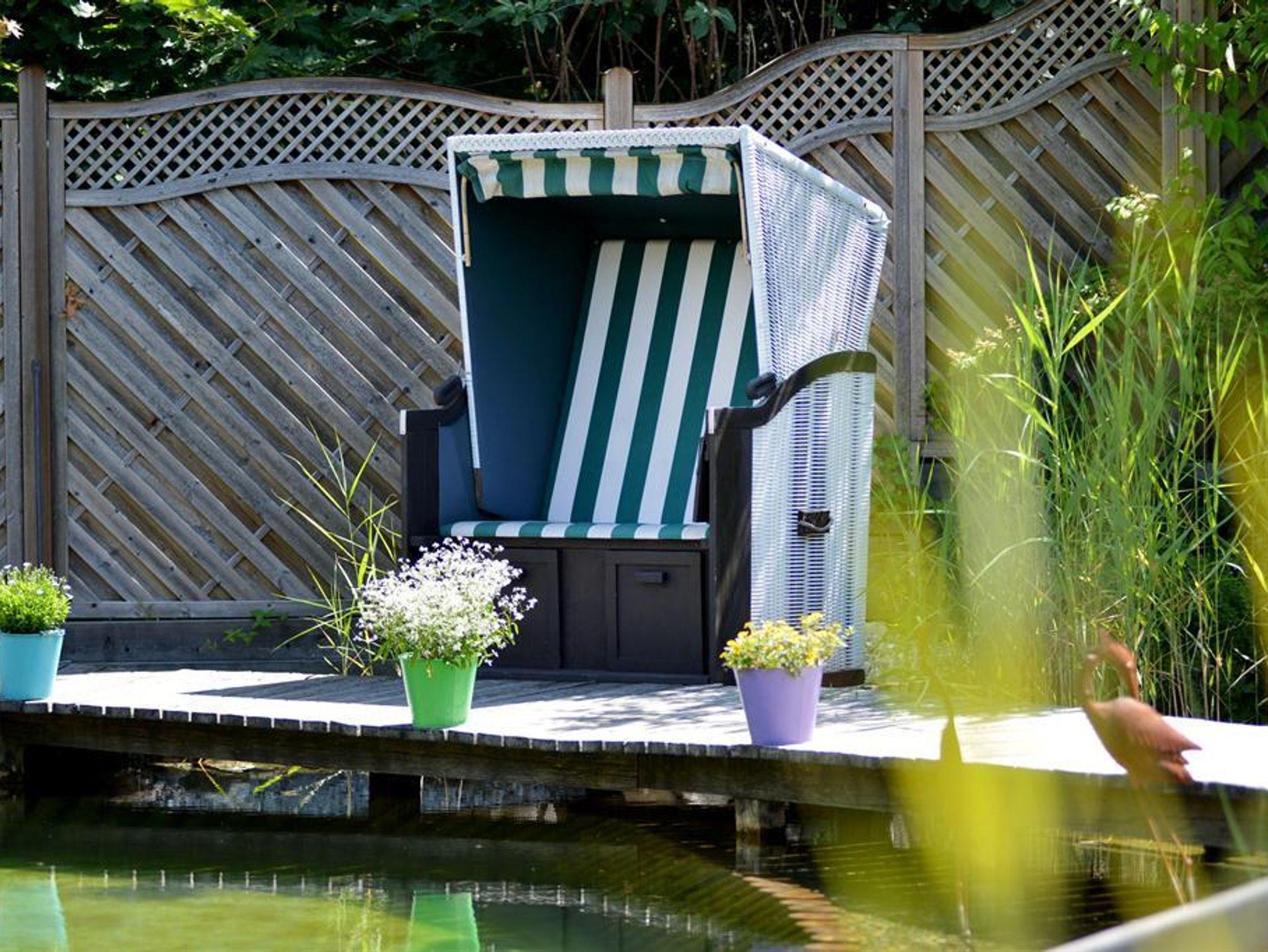 Zum Entspannen bieten wir Ihnen einen blühenden Garten mit Schwimmteich, sonniger Liegewiese und urigem Gartenhäuschen.