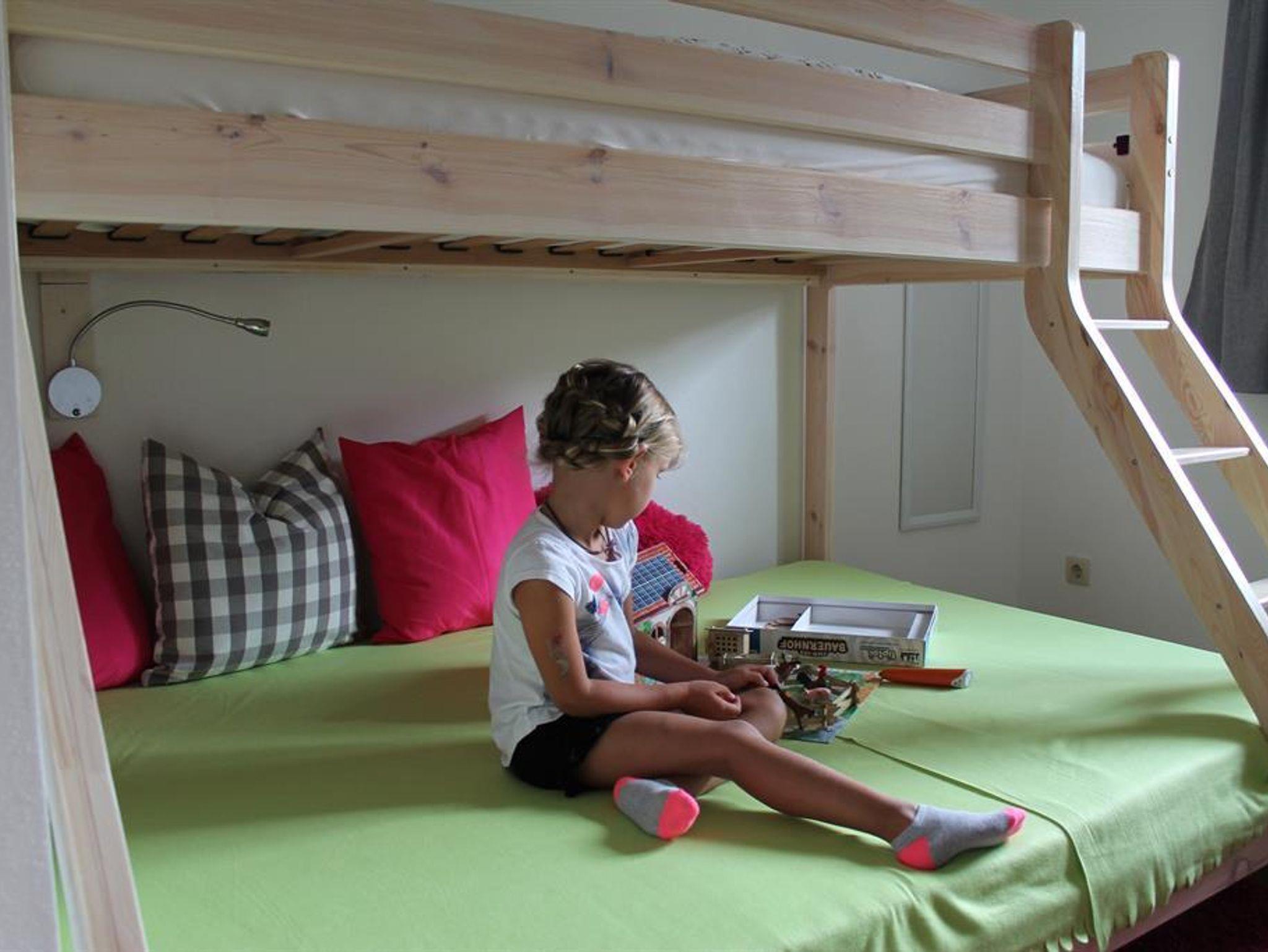 Die Wohnung hat zwei getrennte Schlafzimmer jeweils mit Kaiserblick. In einem steht ein großes Doppelbett (180x200) und ein Einzelbett, welches zu einem Doppelbett (160x200) ausgezogen werden kann. Das zweite Schlafzimmer hat ein Stockbett mit einer großen Liegefläche unten (140x200) und einem normalen Bett oben und bietet Kindern genügend Platz zum Spielen. Beide Schlafzimmer bieten ausreichend Stauraum für Ihre Kleidung.