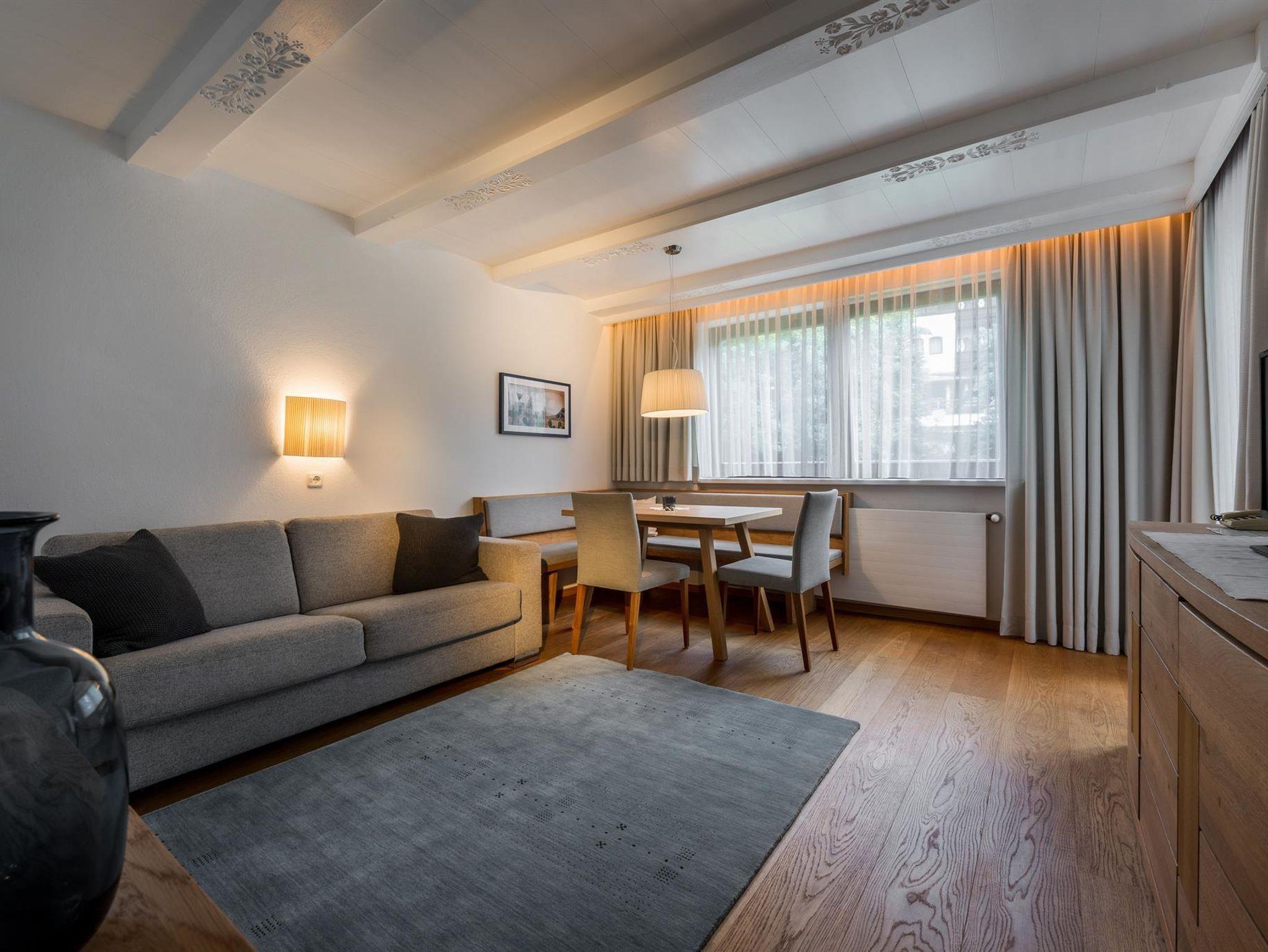 Für 4-5 Personen, bestehend aus: Wohn-/Schlafraum mit Essecke, Kochnische, Doppelcouch, einem separaten Doppelzimmer, Bad/WC und Balkon oder Terrasse. Alle Wohnungen sind mit Telefon und Kabel-TV ausgestattet. Bettwäsche, sowie Handtücher sind vorhanden. Die Ortstaxe in Höhe von EUR 2,00 pro Erwachsenen und Tag wird zusätzlich verrechnet.