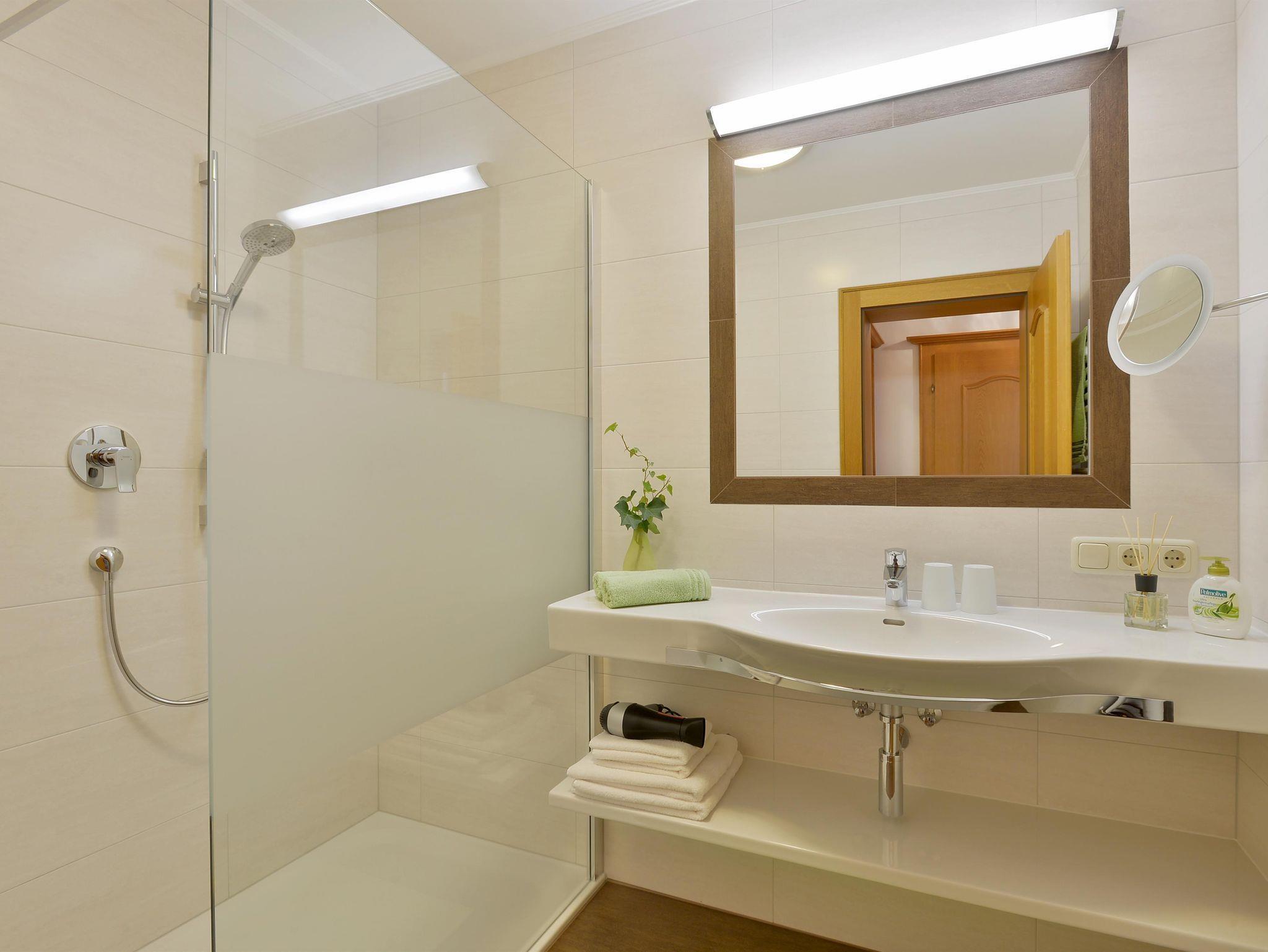 Die Ferienwohnung verfügt über ein separates WC. Der sonnige Balkon mit Blick zum Kapellenpark sowie zum Wahrzeichen von Ellmau, der Maria-Heimsuchungskapelle, lädt zum Verweilen ein.