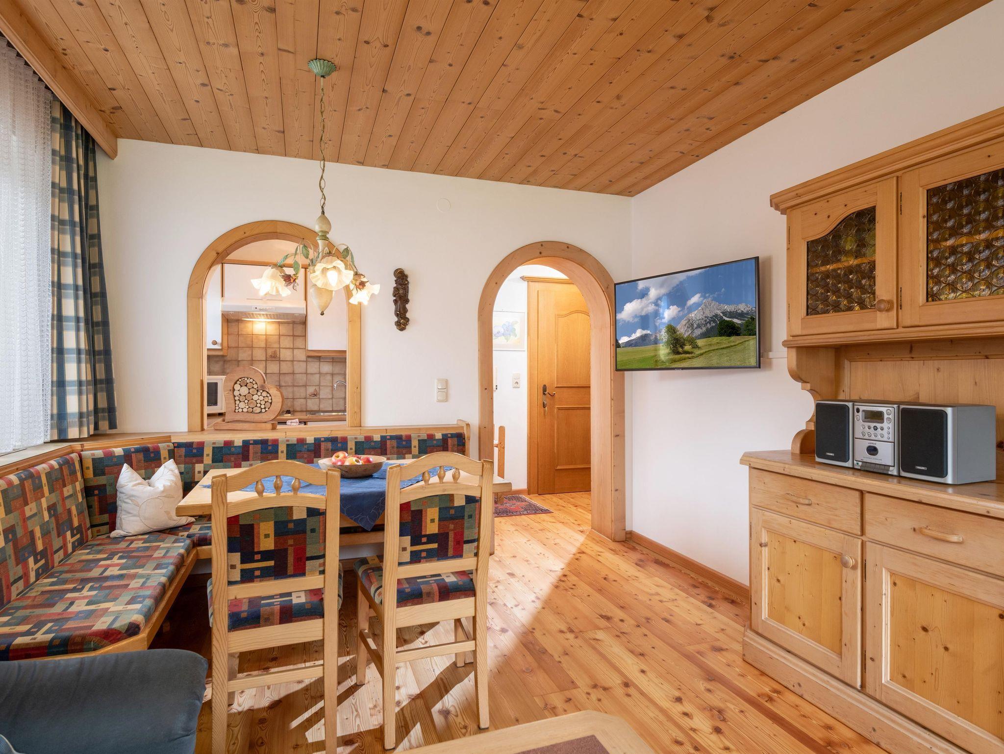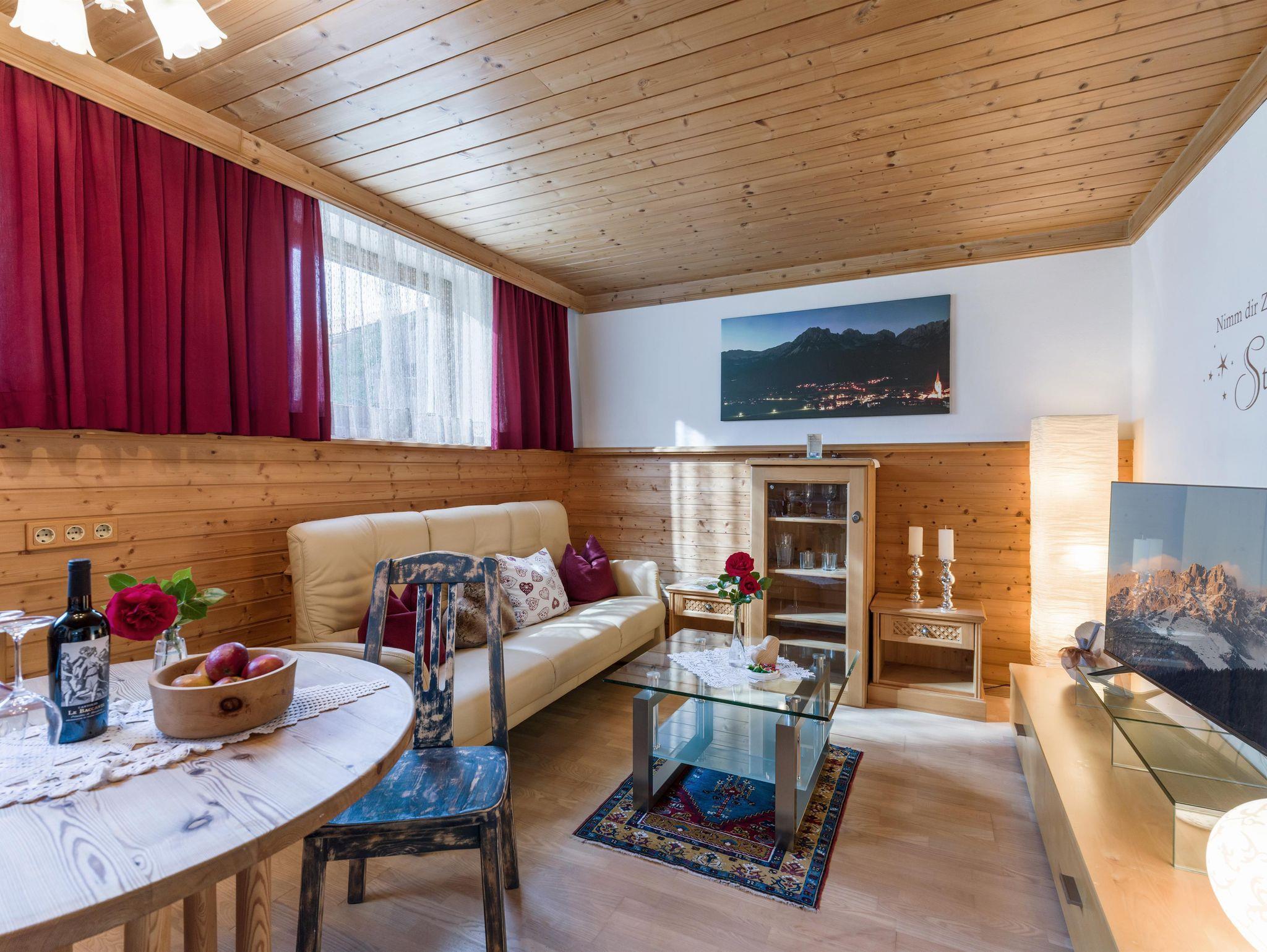 Unsere drei im 1.Stock und im Souterrain gelegenen Nichtraucher-Ferienwohnungen, sind gemütlich im Tiroler Stil komplett und komfortabel eingerichtet. Genießen Sie bei den oberen Appartements die sonnigen Balkone mit Panoramablick zur Kapelle, zum Hartkaiser und zum imposanten Wilden Kaiser; im Winter können Sie die tollen Veranstaltungen auf der Stangl-Leit direkt von Ihrem Balkon aus miterleben.