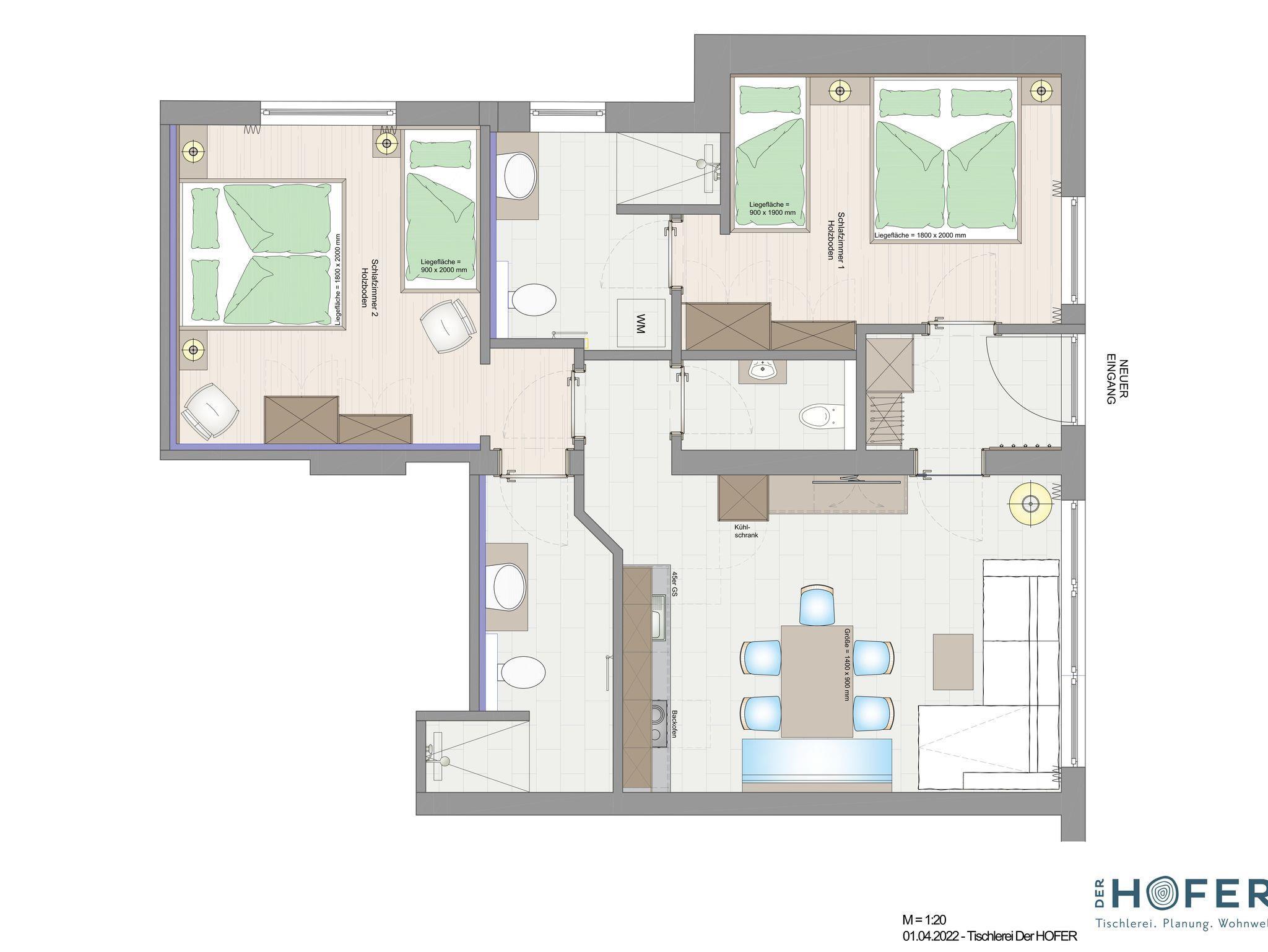 Neues, modernes Appartement 180m2. 4 Schlafzimmern und Zusatzbetten, W-Lan in jedem Zimmer.