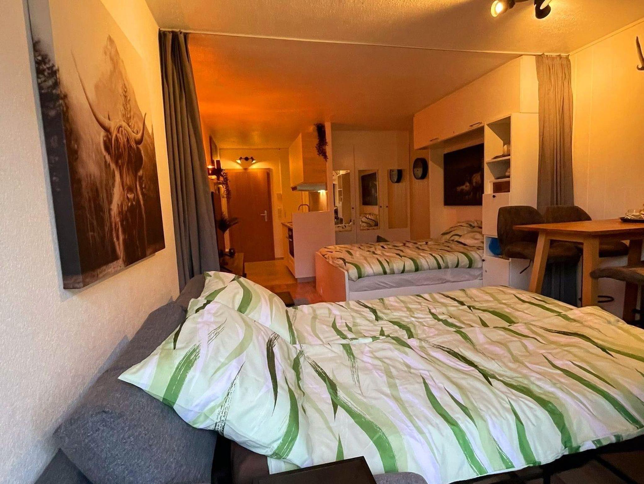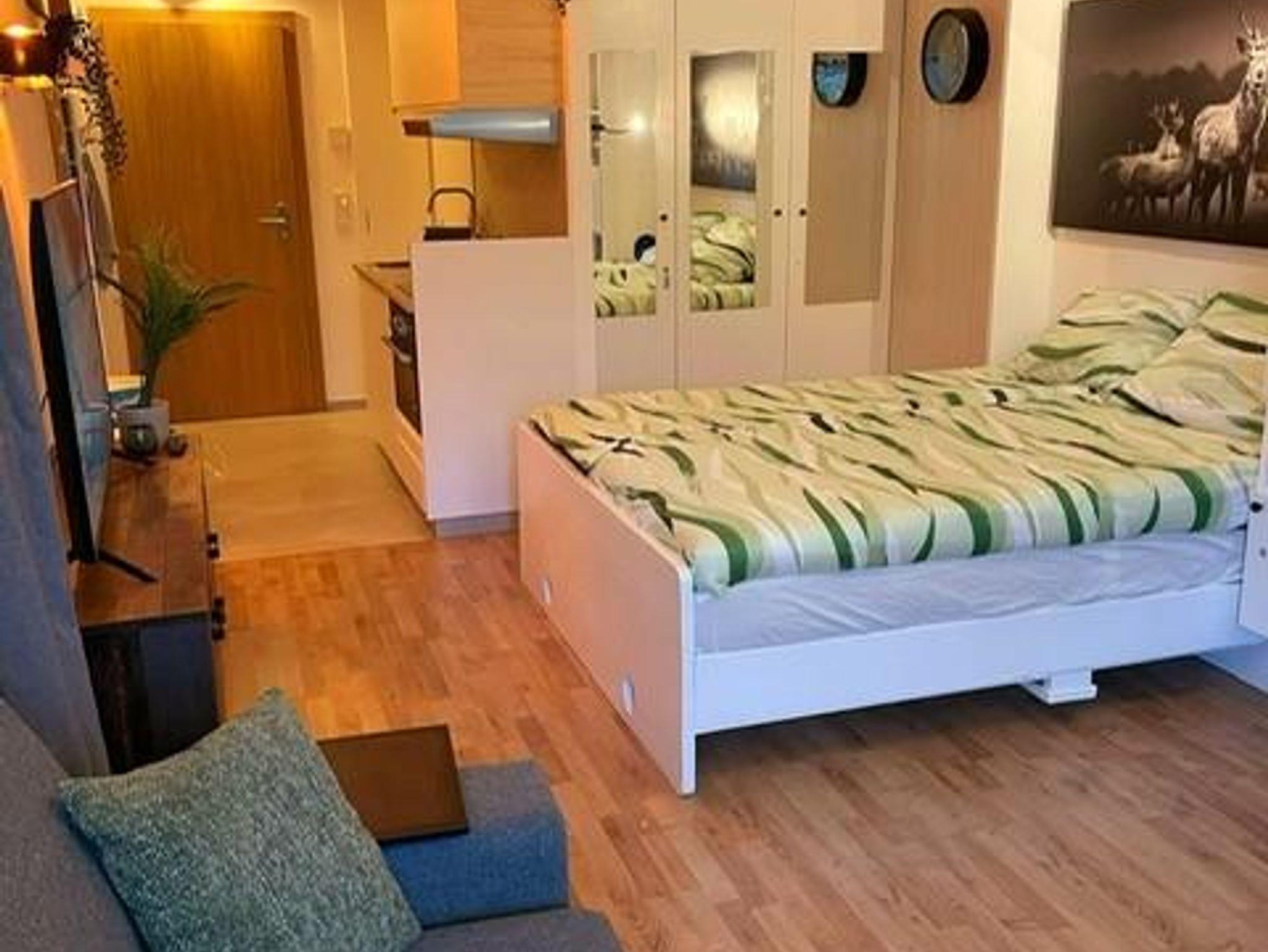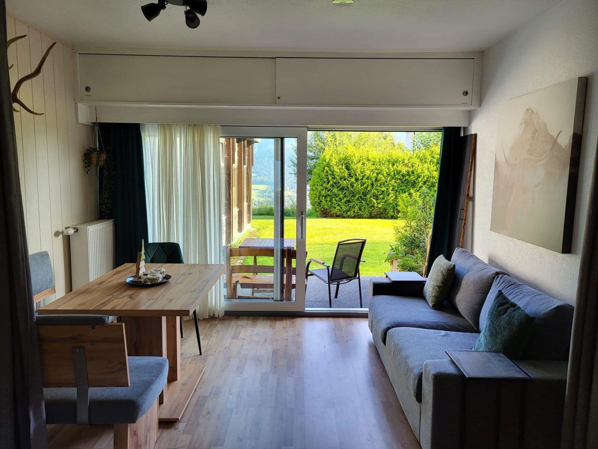 Im Erdgeschoss befindet sich das Appartement Kaiserseite, ein voll ausgestattetes Studio, ideal für 1 bis 3 Erwachsene oder 2 Erwachsene mit 1 oder 2 Kindern. Bitte beachten Sie, dass die ausziehbare Couch nur 1,20 Meter breit ist und maximal 110 Kilogramm tragen kann.