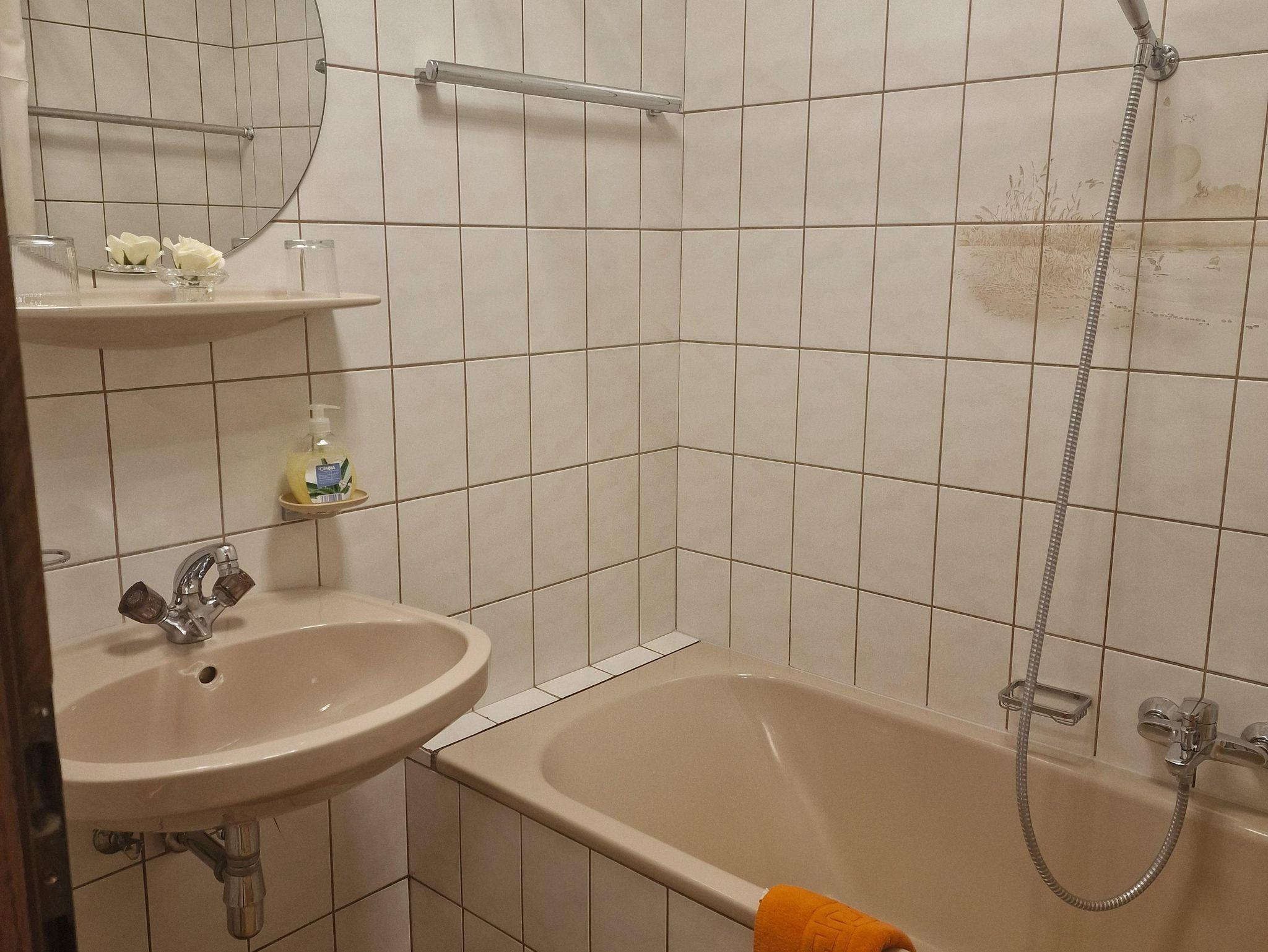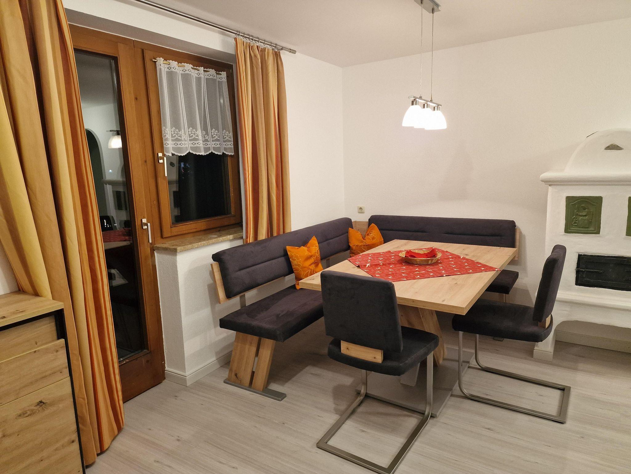 Die Ferienwohnung ((ca. 70 m2) mit zwei Schlafzimmern, einem Wohnschlafraum mit Kachelofen und ausziehbarer Couch, Sitzecke, Kochnische, getrenntes Bad/WC, Balkon oder Terrasse, Kabel-TV, Radio, gebührenfreier Internetanschluss.