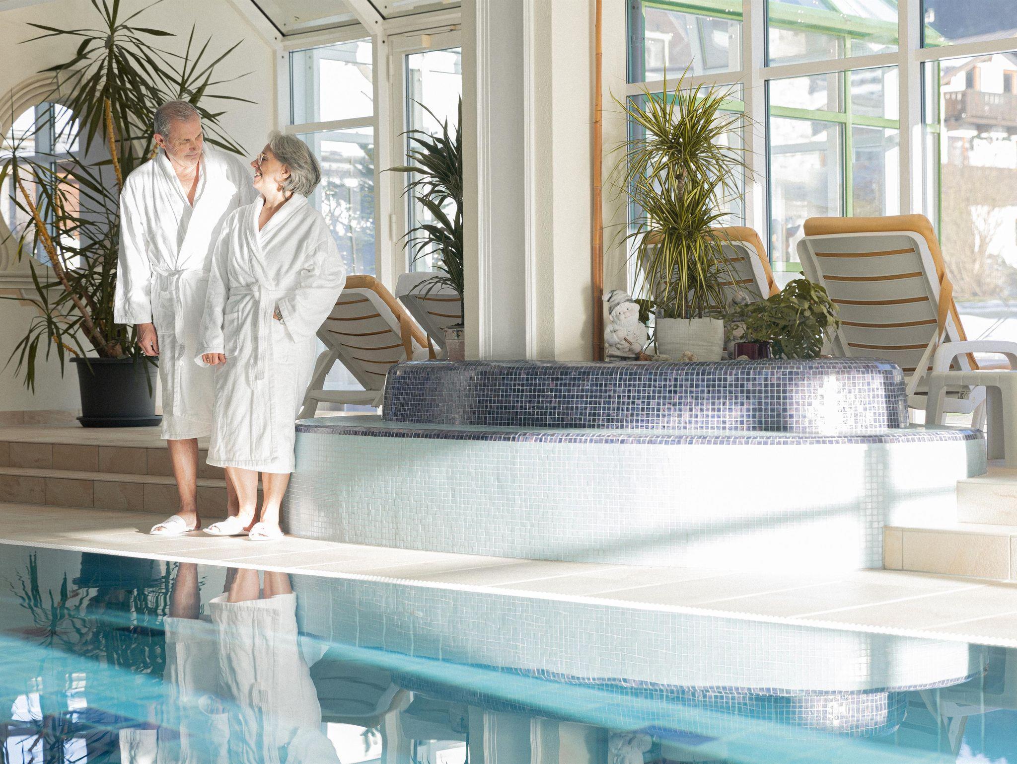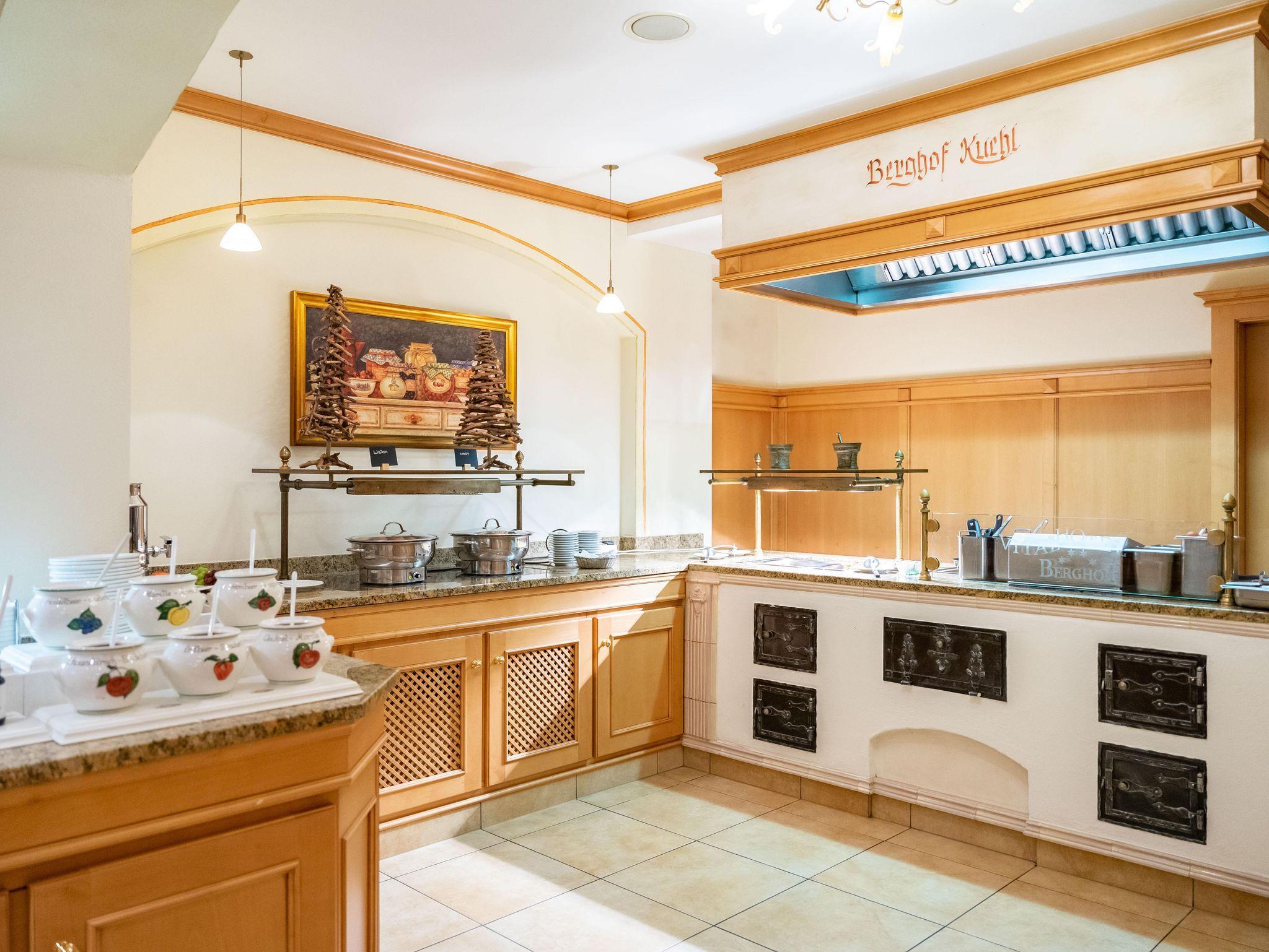 Ein besonderes Highlight ist der Wellnessbereich, der mit einem Schwimmbad, Sauna und einem Ruhe & Relaxingraum ausgestattet ist. Hier können Sie nach einem aktiven Tag einfach entspannen und neue Energie tanken. Kulinarisch werden Sie im Ferienhotel unsere Berghof ebenfalls verwöhnt, denn unsere Küche bietet schmackhafte regionale Köstlichkeiten, die das Herz erfreuen.