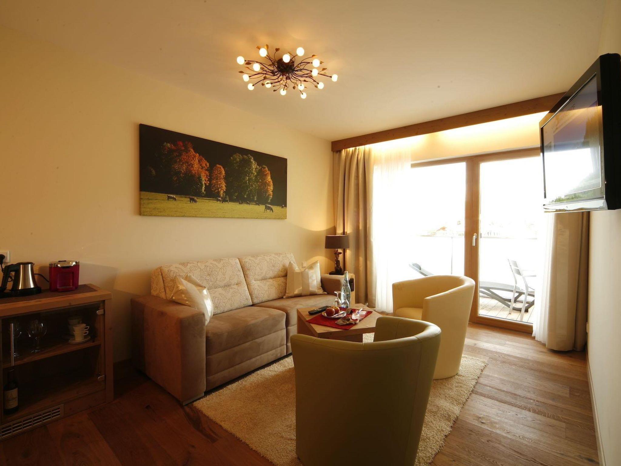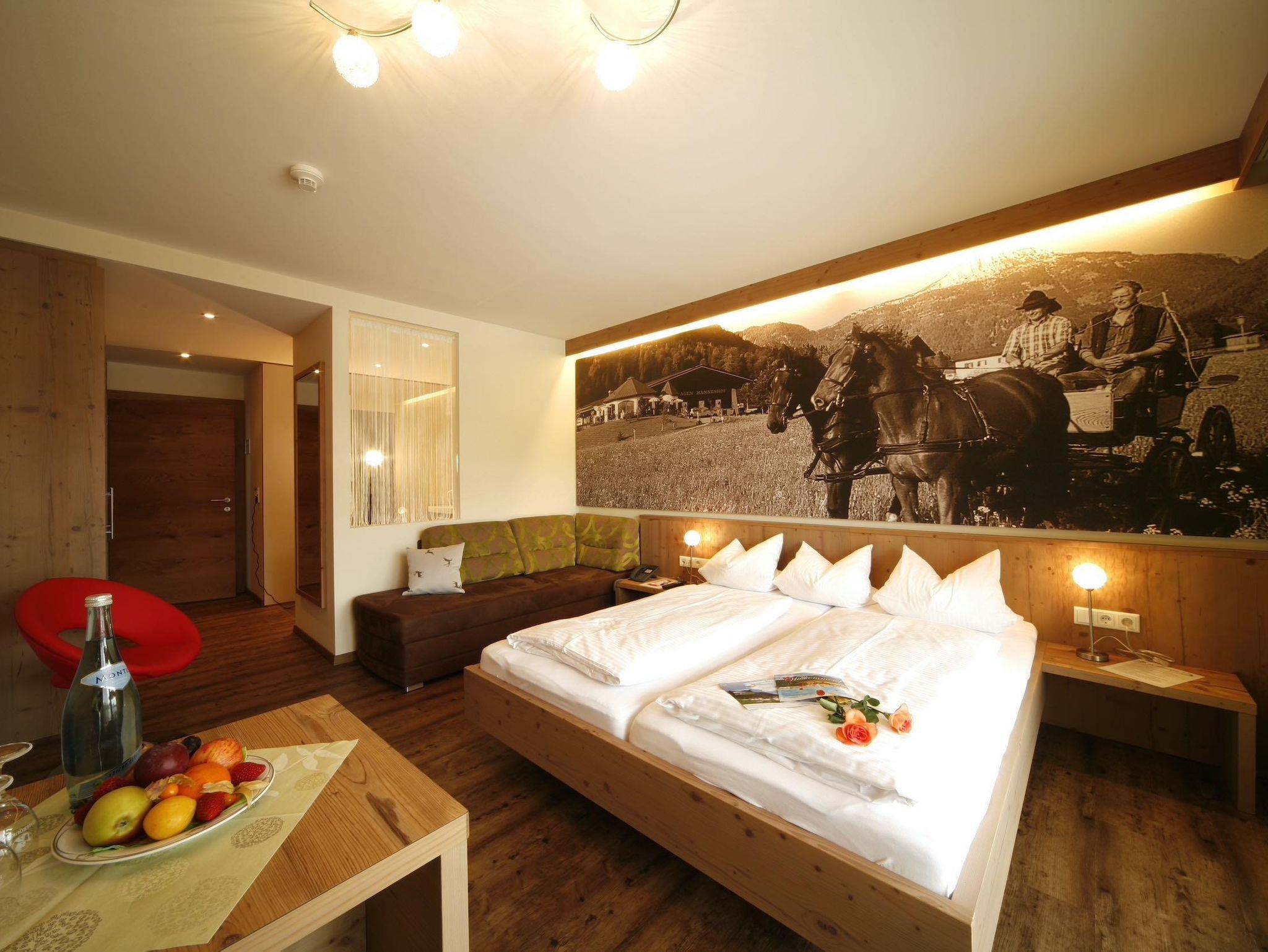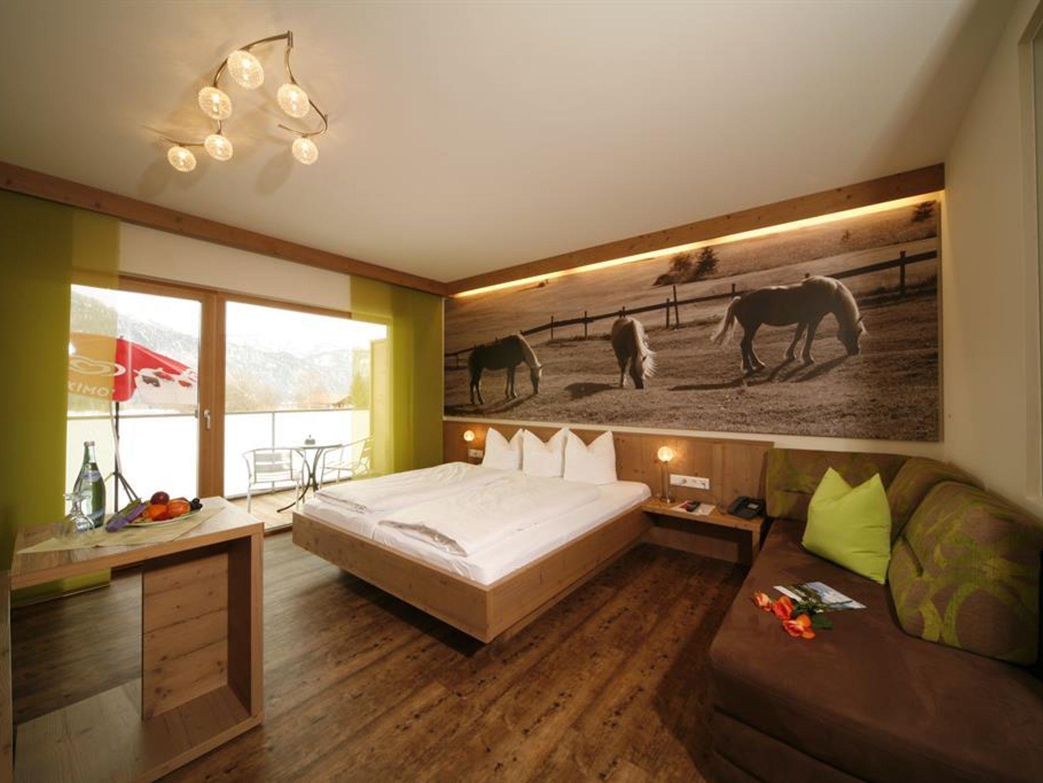 Die hellen und großzügigen (28 qm) Komfort Doppelzimmer zeichnen sich durch ihre moderne Architektur aus, die auf perfekte Weise den alpinen Lifestyle mit traditionellen Materialien verbindet. Alle Komfort Doppelzimmer sind mit Hygiene-Fußboden in Altholzoptik ausgestattet und verfügen über Dusche, separates WC, Kabel-TV und Radio. Die überdachte Sonnenterrasse eröffnet Ihnen traumhafte Blicke auf die Tiroler Bergwelt.