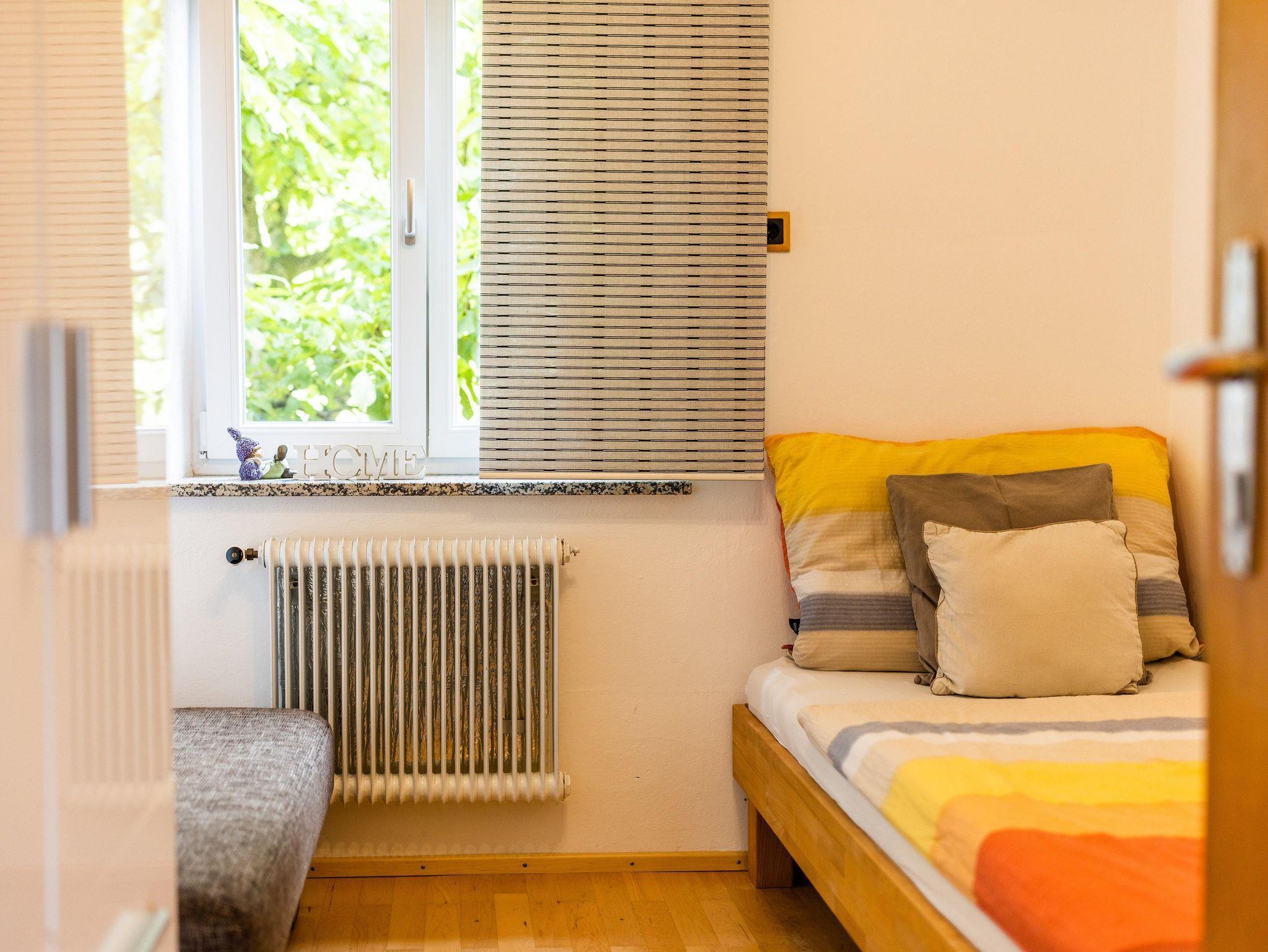 Unser Haus Schatteiner verfügt über eine Ferien - wohnung, welche sich im ersten Stock eines Einfamilienhauses in ruhiger, idyllischer Lage in unmittelbarer Nähe zum Zentrum Eugendorf, befindet. Drei komfortable Schlafräume – zwei Doppelzimmer sowie ein Einzelzimmer erwartet unsere Gäste. Eine vollausgestattete Küche mit separatem Essplatz und ein Badezimmer vervollständigen die Wohnung. Auf dem Balkon genießen Sie einen herrlichen Ausblick aus den Zimmern in die unberührte Natur.