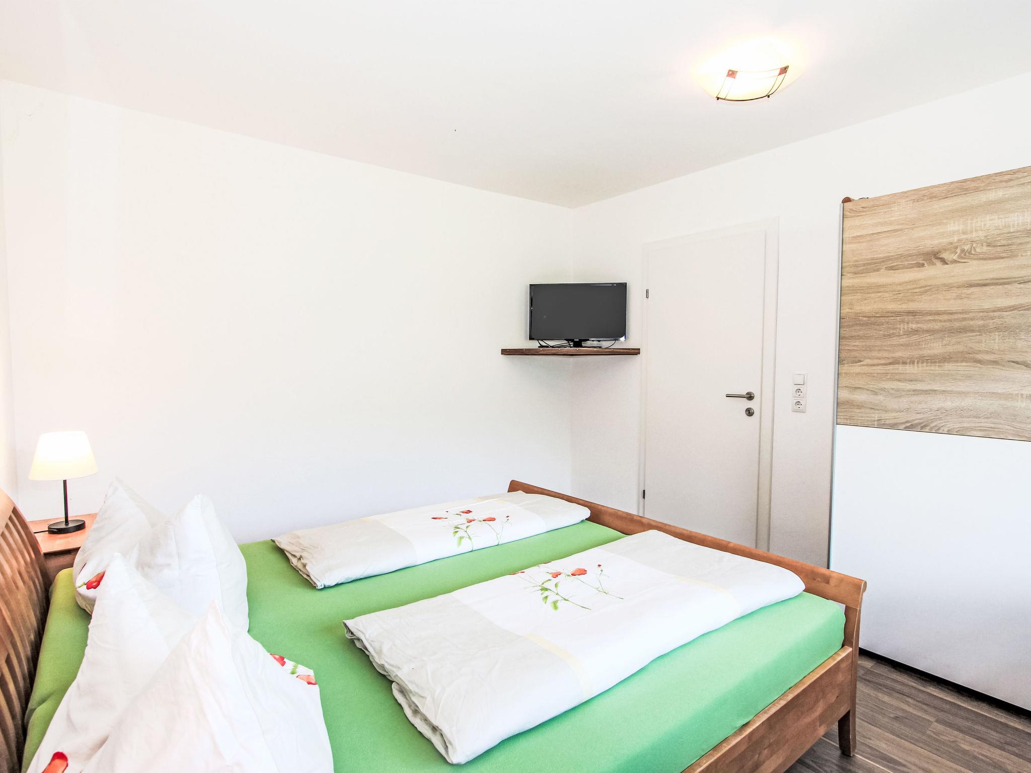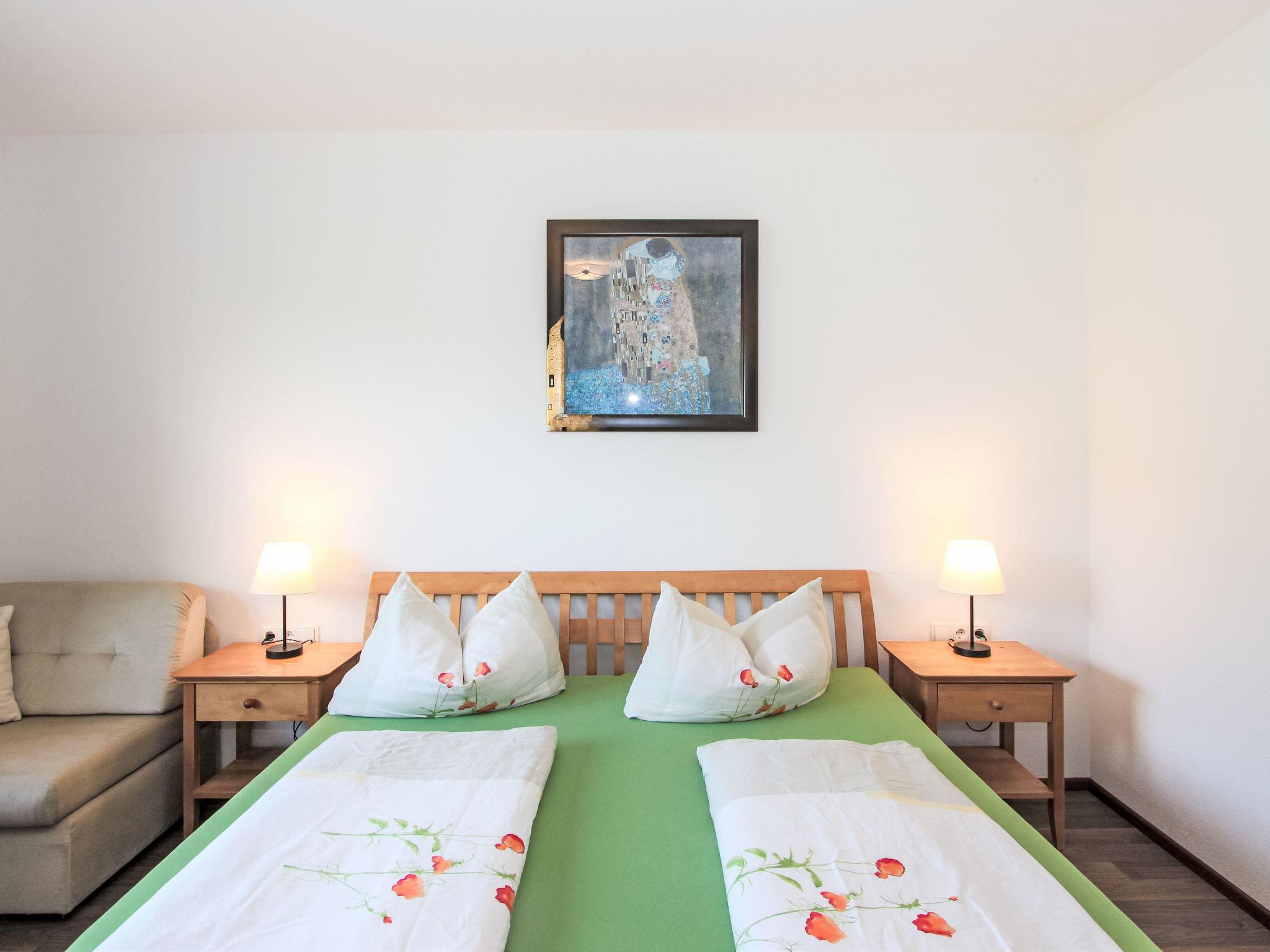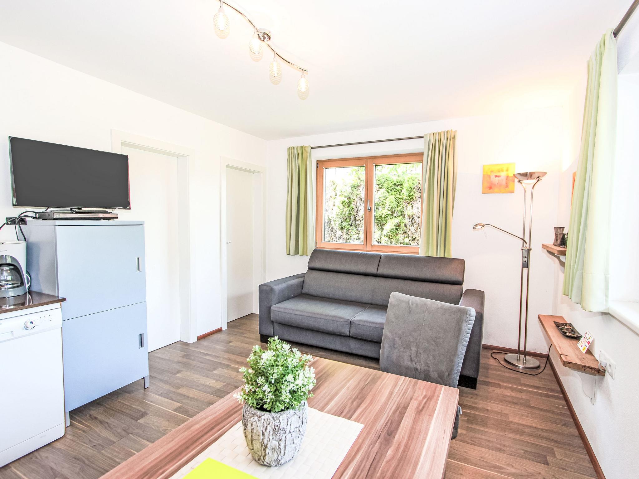 2-room apartment 44 m2, on the ground floor. Bright, cosy furnishings: entrance hall. 1 room with 1 double bed, 1 sleeping facility and satellite TV (flat screen). Living/sleeping room with 1 double sofabed (180 cm, length 200 cm), dining nook and satellite TV (flat screen), DVD. Open kitchen (oven, dishwasher, 4 ceramic glass hob hotplates, microwave, electric coffee machine). Shower, sep. WC. Underfloor heating. Terrace, patio, garden 40 m2. Terrace furniture, deck chairs. Marvellous view of the mountains. Facilities: Internet (WiFi, free). Please note: suitable for families. Non-smokers only. Private entrance, smoke alarm. The apartment is suitable for people with reduced mobility, built next to the main house and has a lot of privacy. A beautiful garden for private use is at disposal.