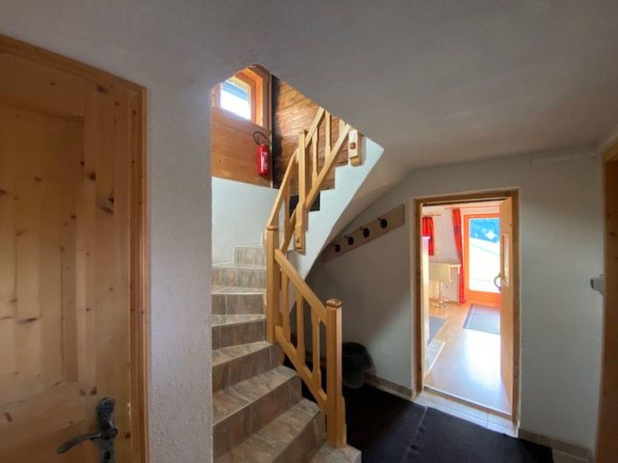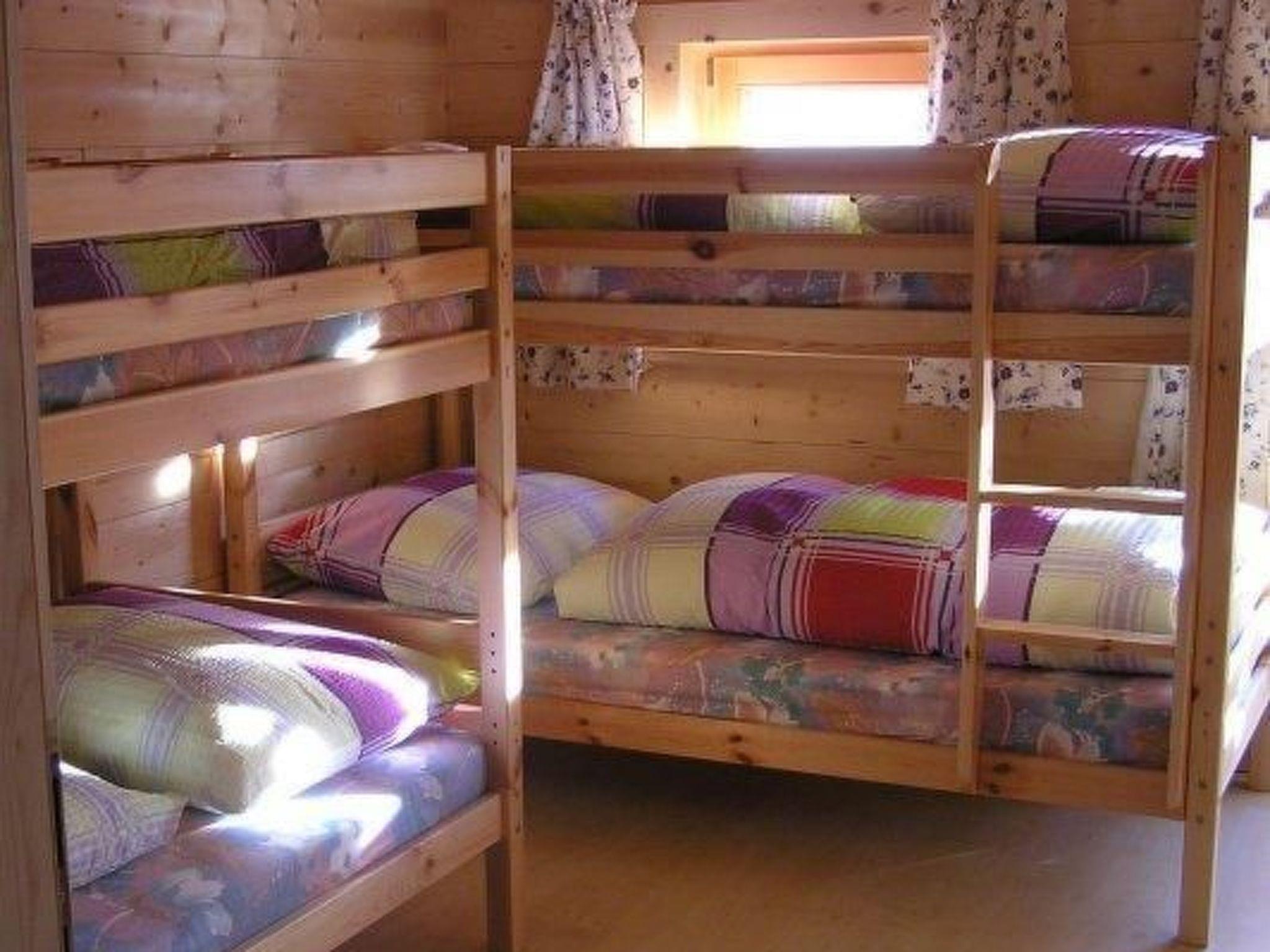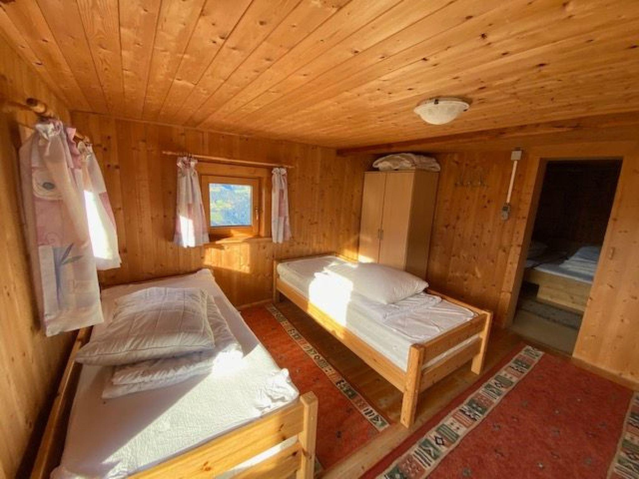 The Zillertal hut offers space for ten people and is equipped with four bedrooms, a fully furnished and equipped kitchen, a cosy living room with fireplace, a bathroom with shower and two toilets. All rooms are on two floors. On the lower floor are the kitchen, the living room, a bedroom and a toilet. The kitchen is equipped with all the necessary kitchen appliances (such as dishwasher, cooker and oven, all crockery, fridge and freezer, etc.). In the living area there are two large tables, as well as chairs and benches and, of course, a cosy wood-burning stove. The bedroom on the lower floor is furnished with a double bed and a wardrobe. The remaining three bedrooms and the bathroom are located on the upper floor. These are furnished with bunk beds and wardrobes. Glass doors lead from the rooms on the second floor to the balcony. The bathroom has a shower and two washbasins, as well as another WC.
