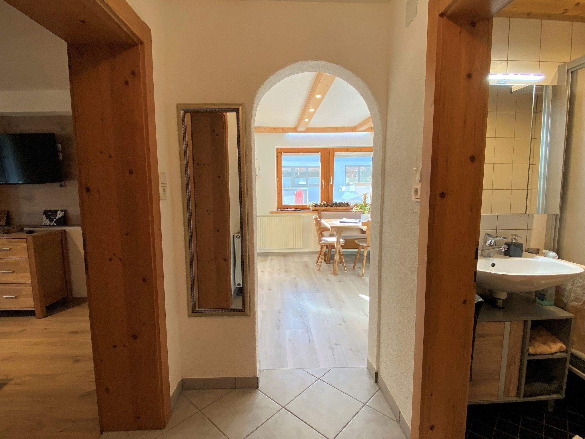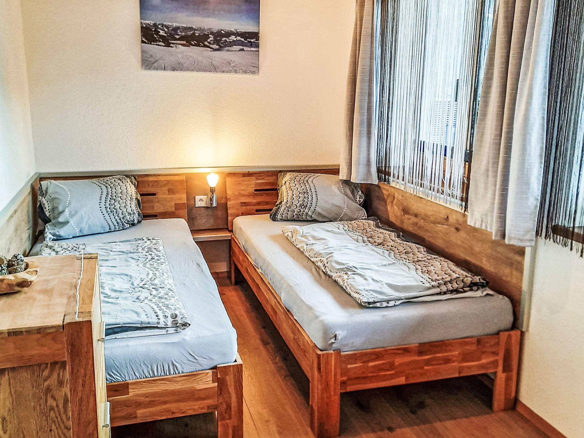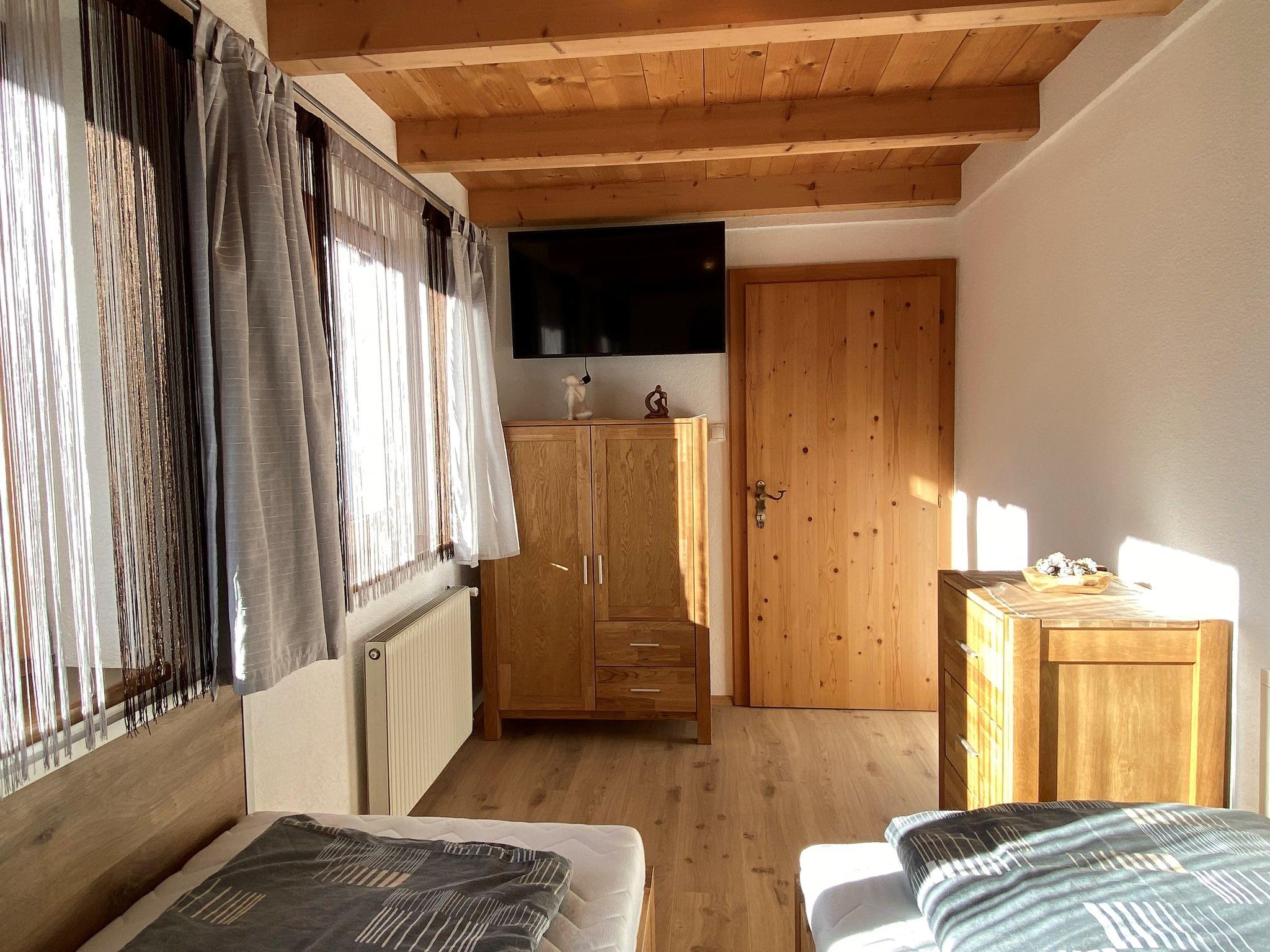 "Anna", 3-room apartment 55 m2, on the upper floor. Renovated in 2021, beautiful and modern furnishings: 1 room with 2 beds and satellite TV (flat screen). 1 double bedroom with satellite TV and flat screen. Exit to the balcony. Kitchen-/living room (oven, dishwasher, 4 ceramic glass hob hotplates, toaster, kettle, microwave, electric coffee machine) with dining nook. Shower/WC. Wood heating, solar energy heating. Balcony 8 m2. Balcony furniture. View of the mountains. Parking (1 car). E-charging station. Please note: non-smokers only.