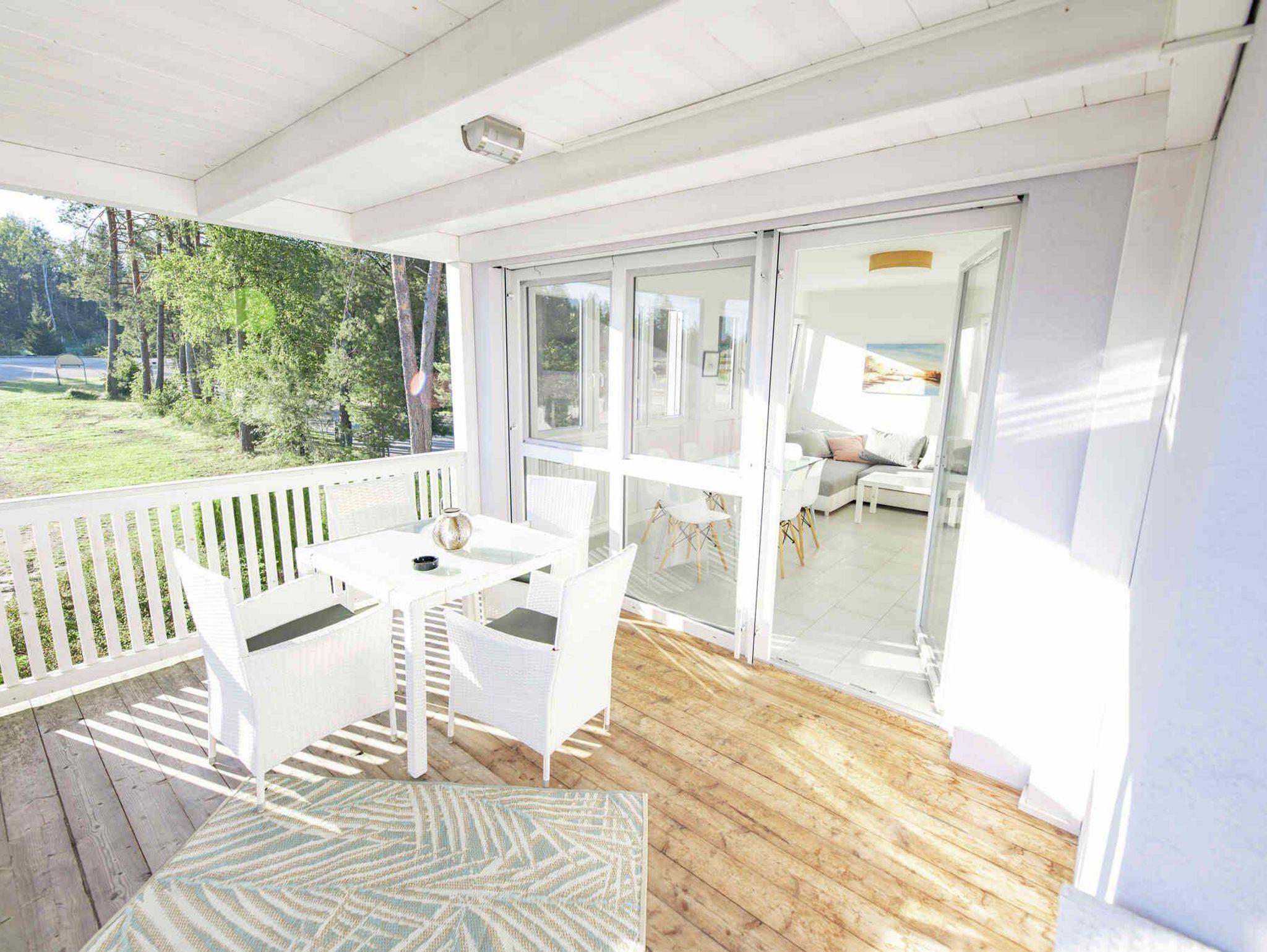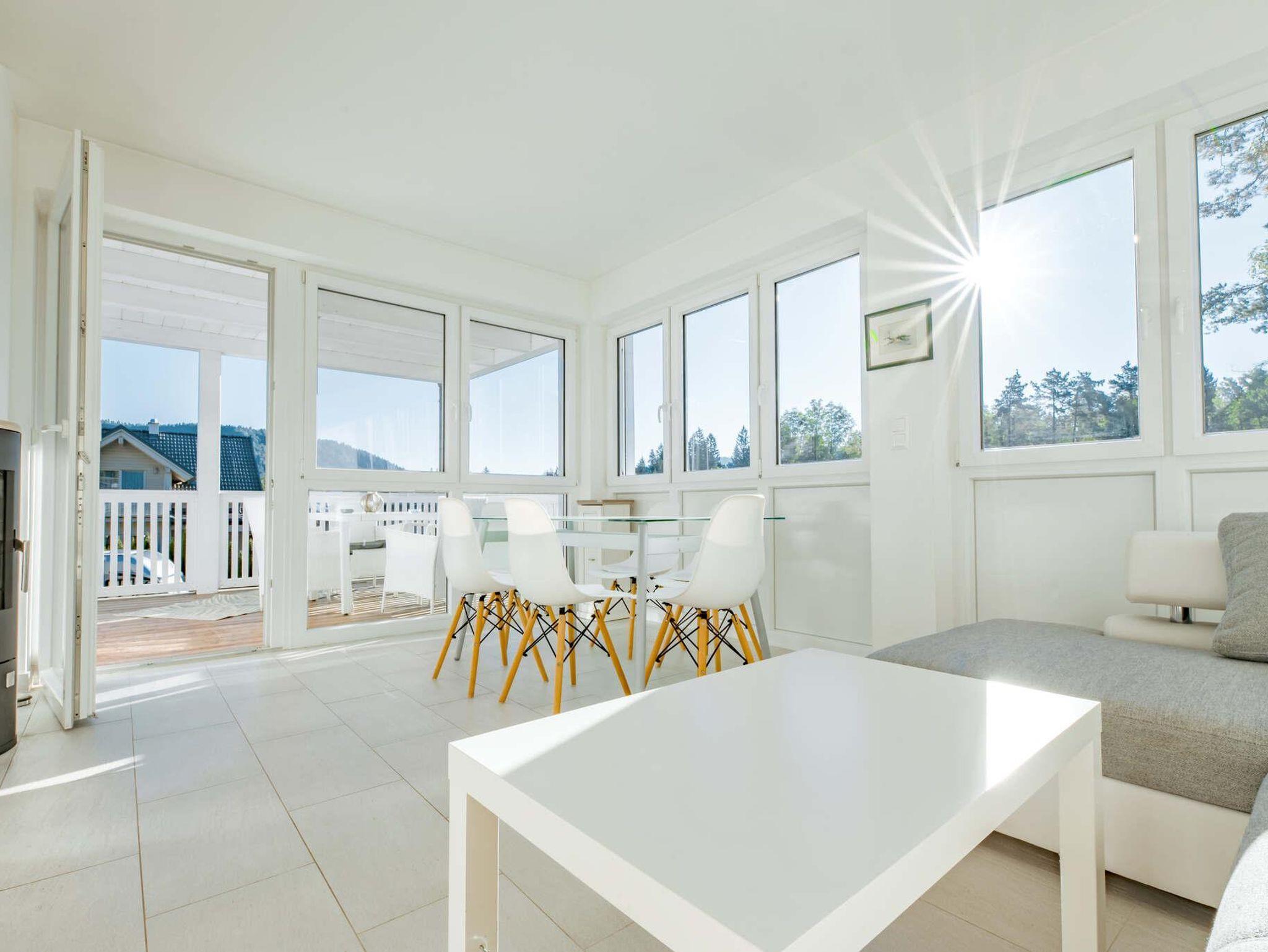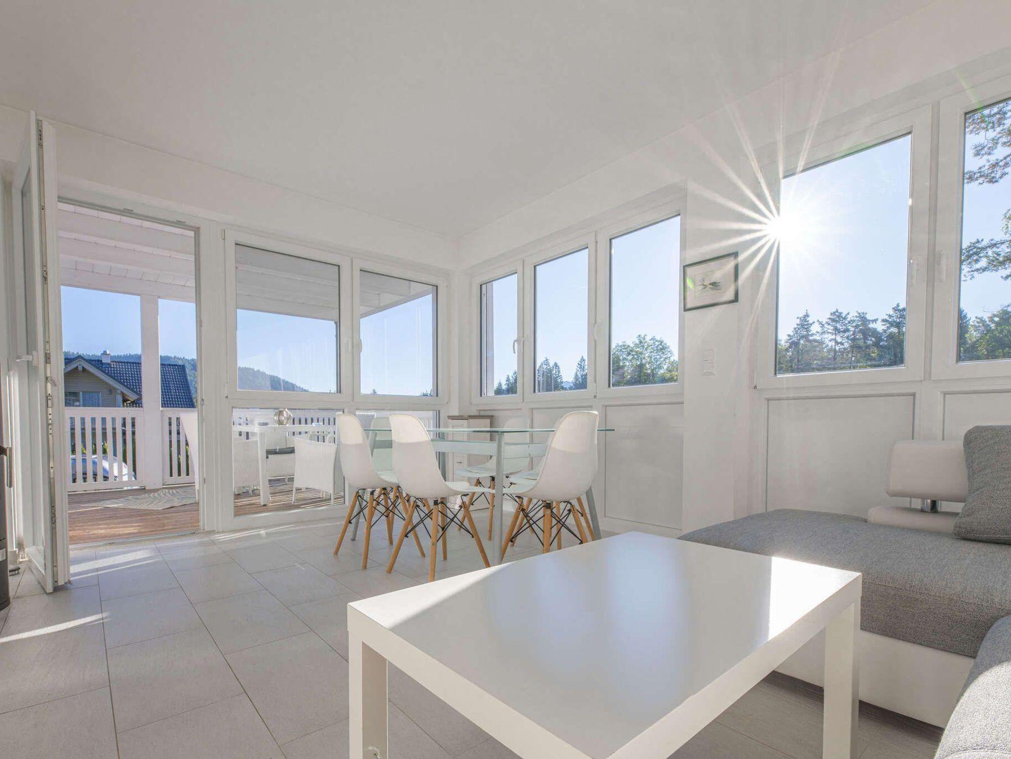 Unser schönstes und größtes Appartment, mit breiter Fensterfront im Wohnraum, Kamin und Couch zum Wohlfühlen. Natürlich sind auch hier alle Möbel in weiß gehalten, die Schlafzimmer mit Boxspringbetten ausgestattet.