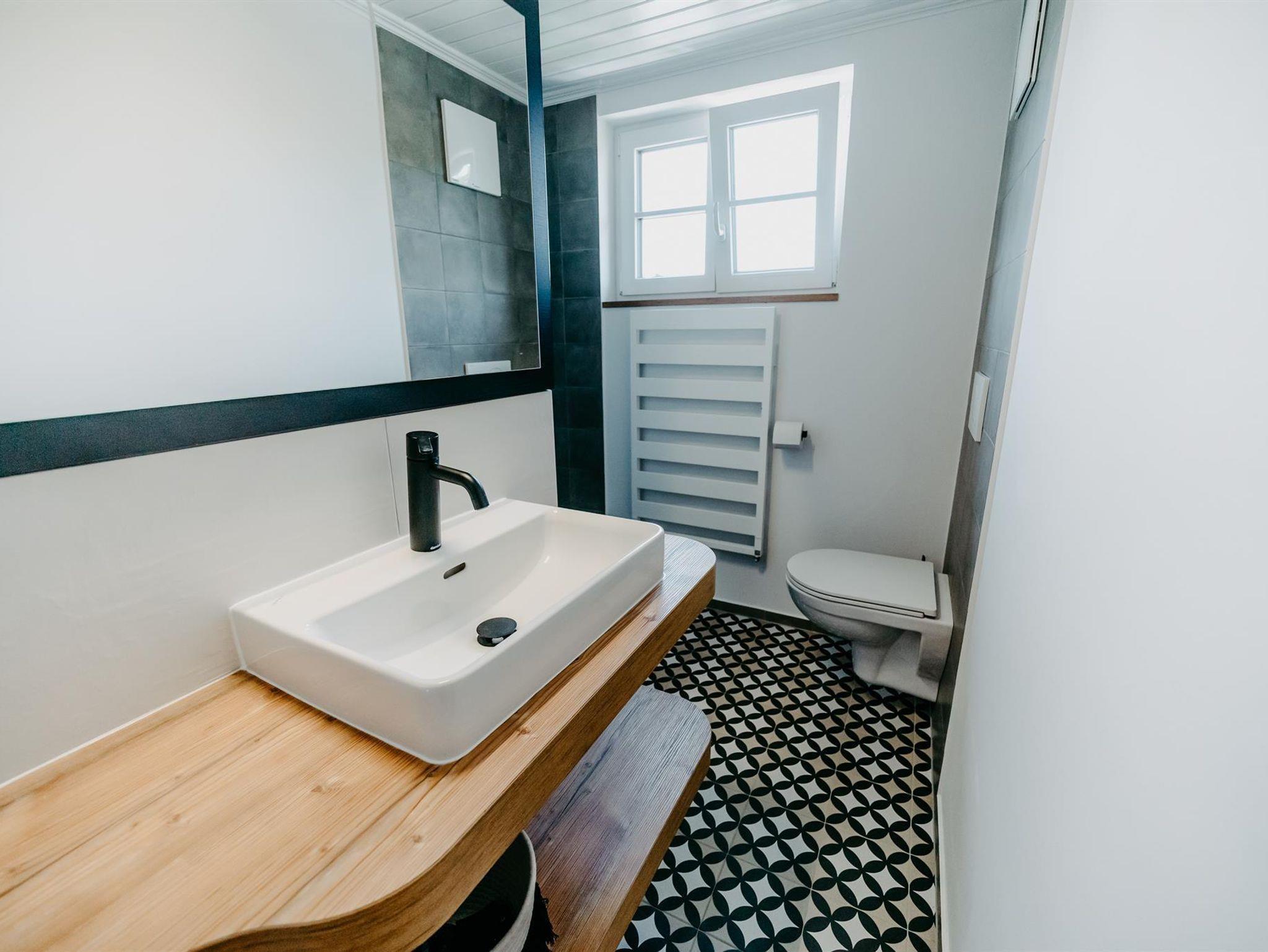 • Dusche, WC mit Fenster , mit Air-WC plus Raumventilator, Fußbodenheizung und Handtuchwärmer