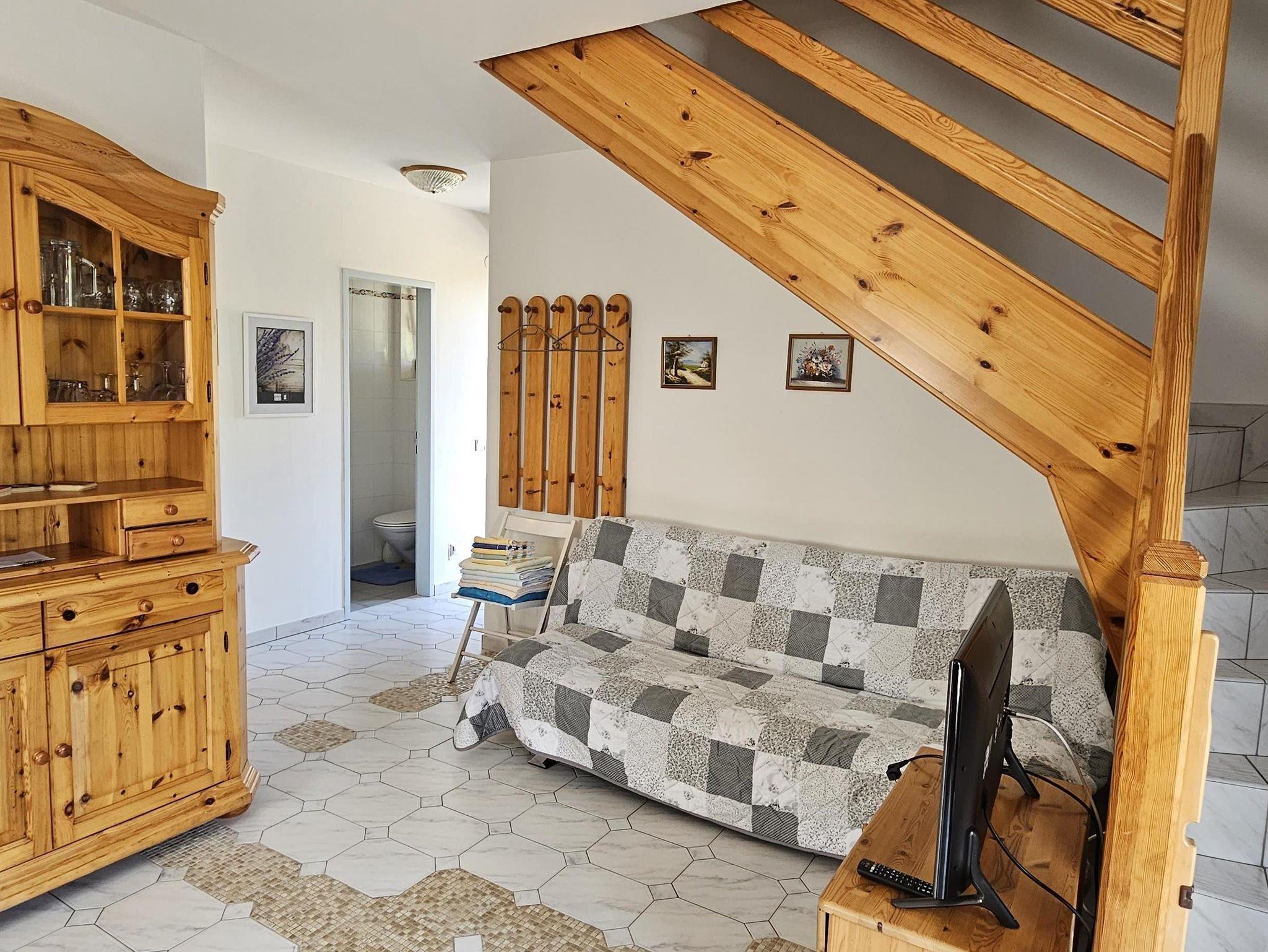 Die Ferienwohnung verfügt über eine große Wohnküche, ein Schlafzimmer, ein Kinderzimmer mit Stockbett und ein normales Bett, Bad, WC, Terrasse mit Garten, Sonneliegen und Sitzgarnitur. Sie haben auch freien Zugang in das schöne Strandbad, welches nur drei Minuten von unseren Ferienwohnungen entfernt ist.