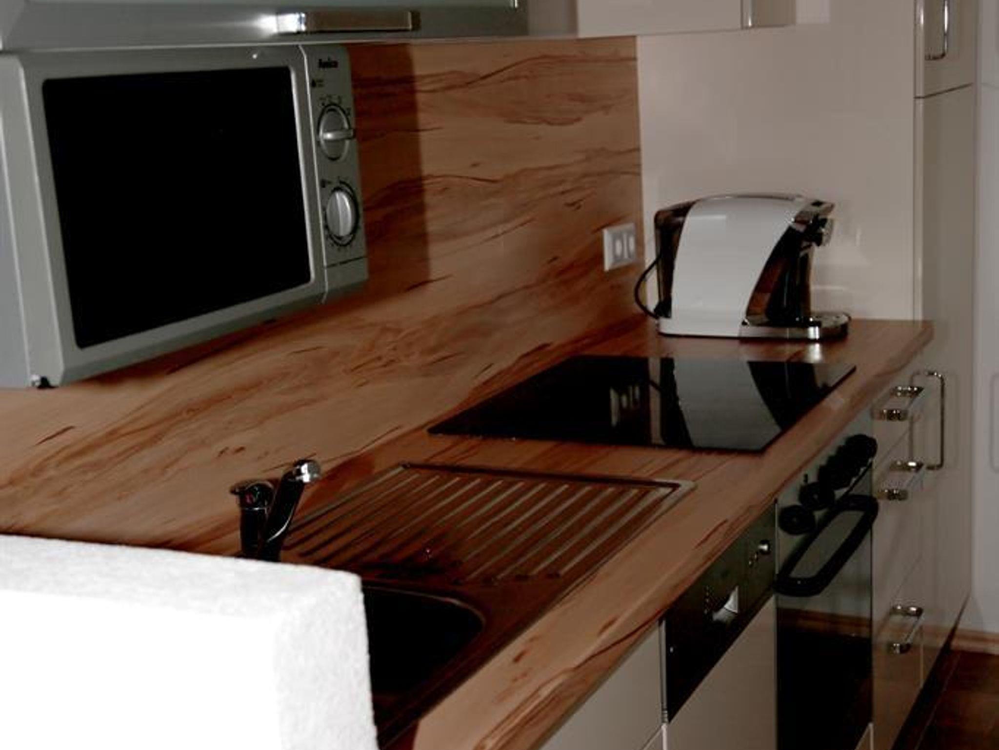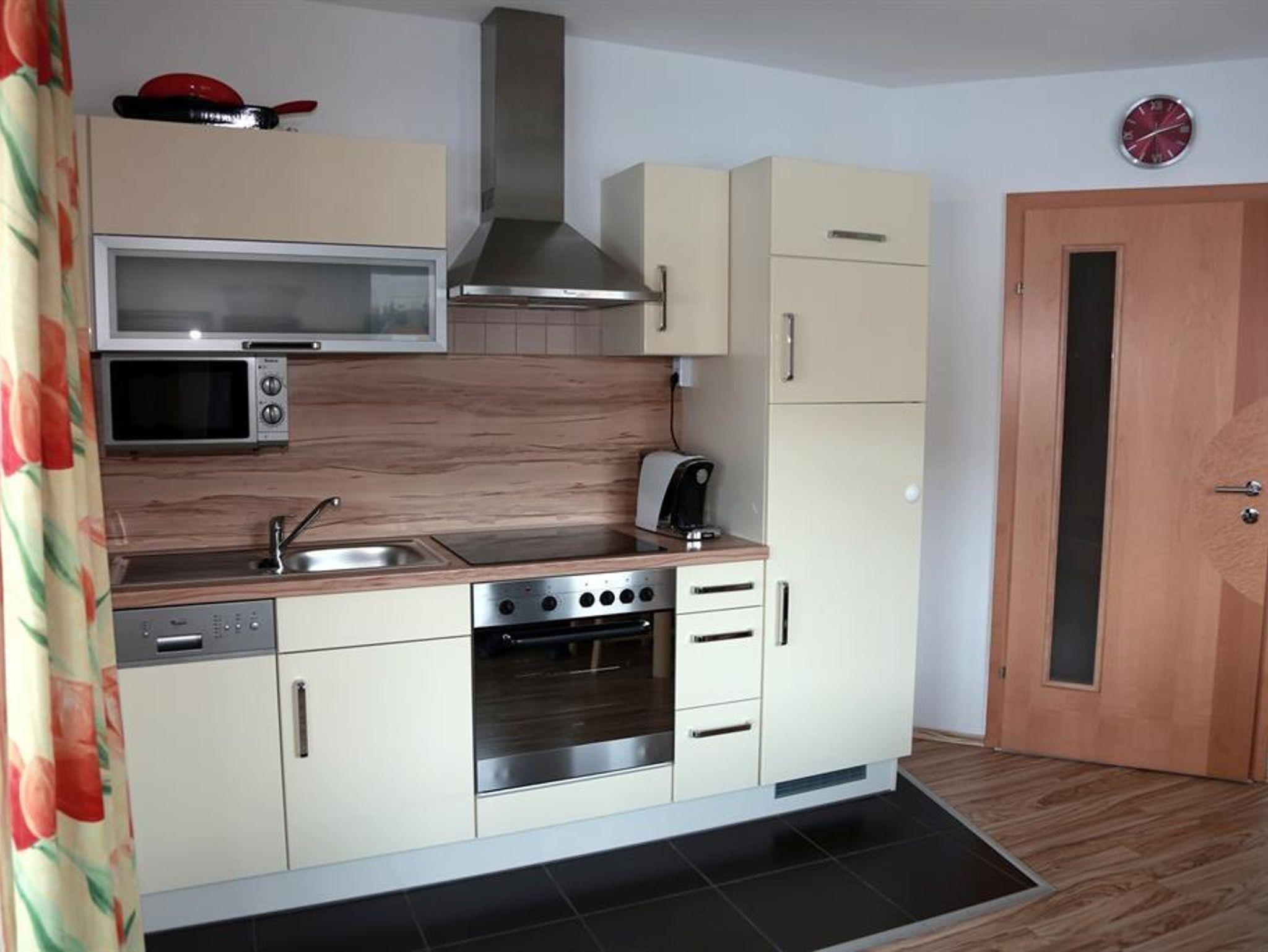 Das großzügige Apartment 3 hat eine voll ausgestattete Küche und ein geräumiges Wohnzimmer. Die 20m² große Terrasse lädt zum gemütlichen Zusammensitzen ein.