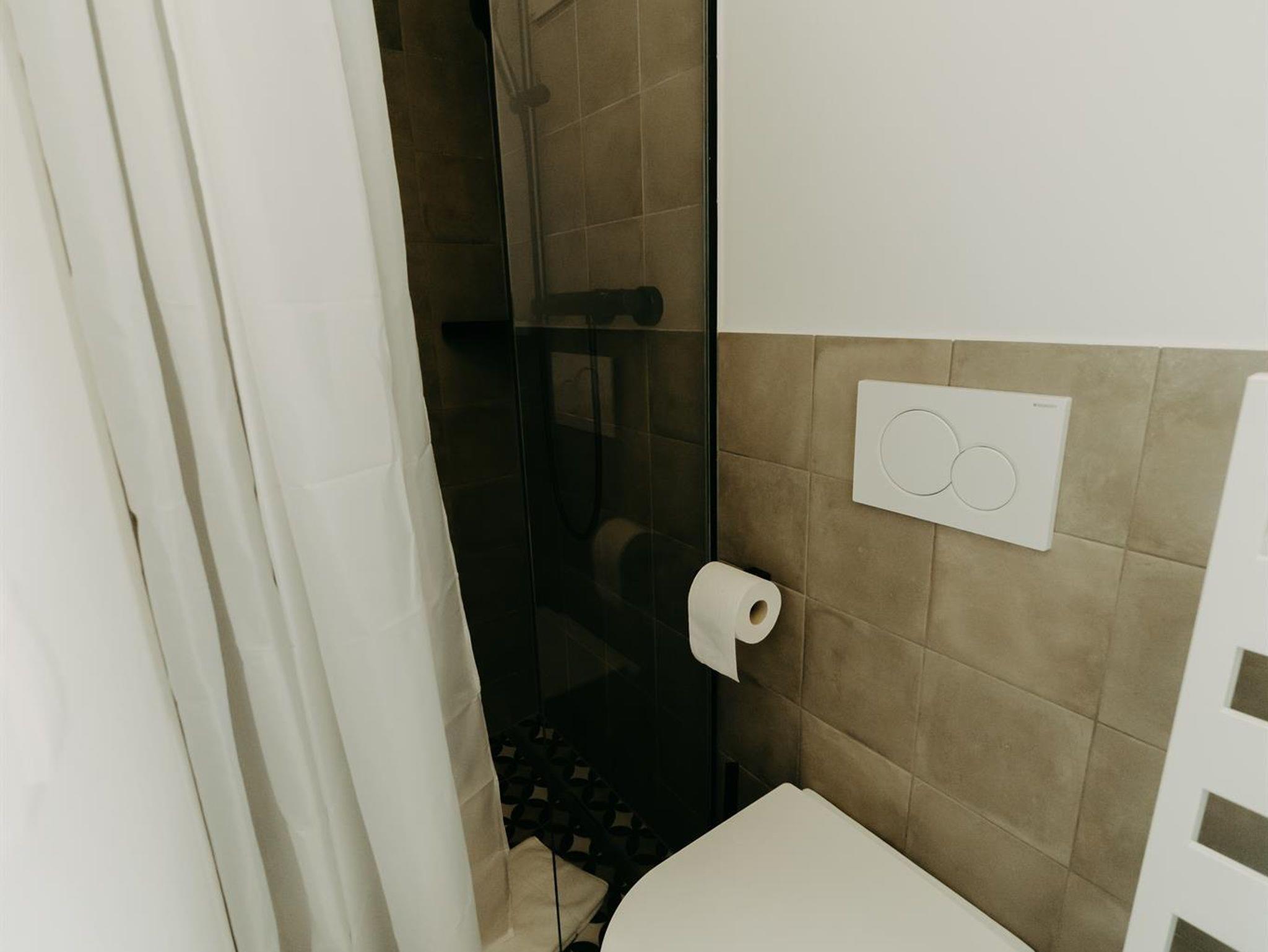 • Dusche, WC mit Fenster, Air-WC-Plus, Raumventilator, Fußbodenheizung, Handtuchwärmer