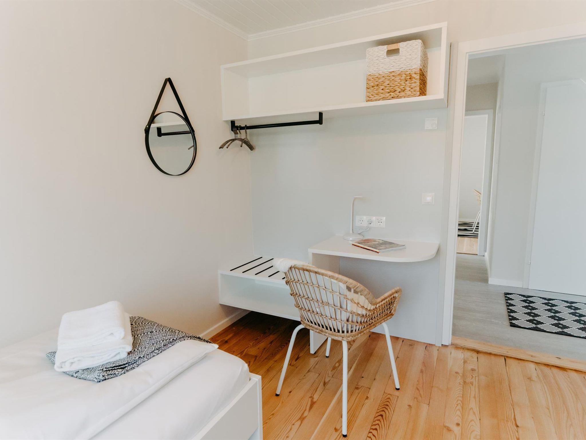 • kleine Schreibtische mit USB-Ports in Schlafzimmer und Wohnzimmer