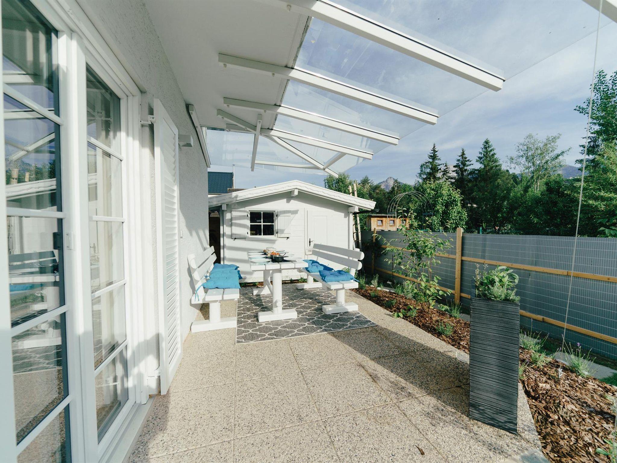 • überdachte Terrasse mit großer Outdoor-Sitzgruppe und abnehmbaren Sonnensegel