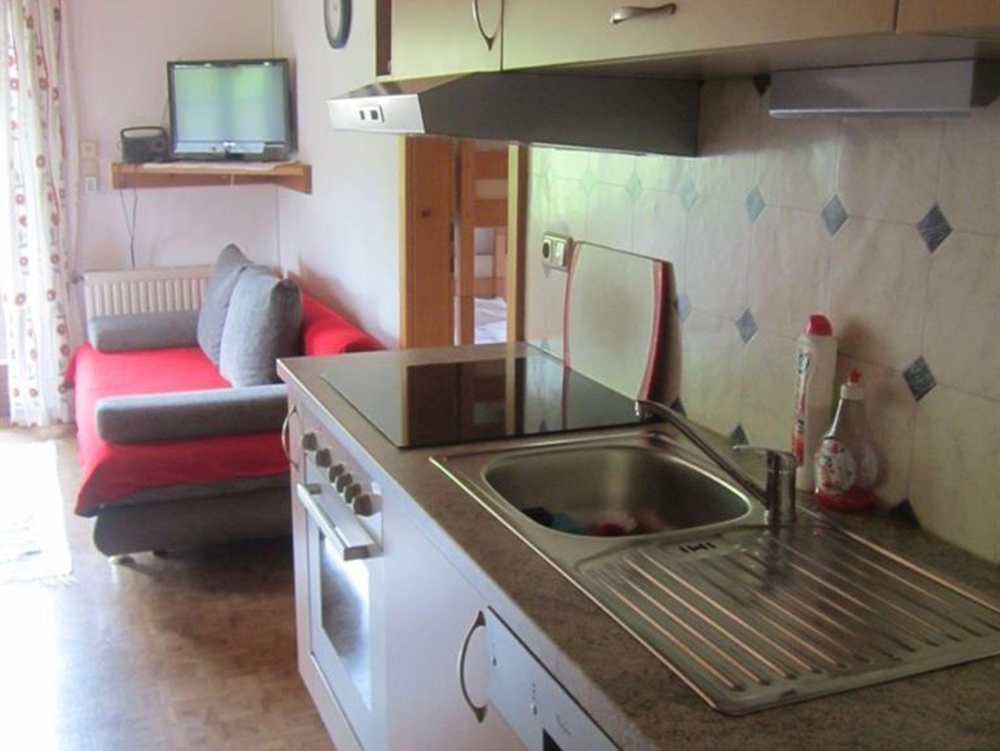 Die Wohnung befindet sich im ersten Stock und besteht aus Wohnküche mit Couchliege, Schlafzimmer (Doppelbett mit Zusatzbett), Dusche, WC & Balkon.