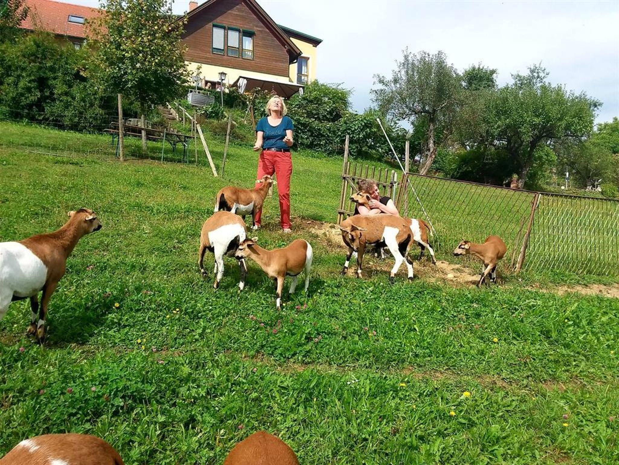 Für unsere vierbeinigen Gäste gibt es einen eingezäunten Hundebereich SORGLOS. Die Kinder können unsere lieben Schafe und Hunde streicheln, Hühner und Enten beobachten, Garten erkunden und Bäume erklettern …