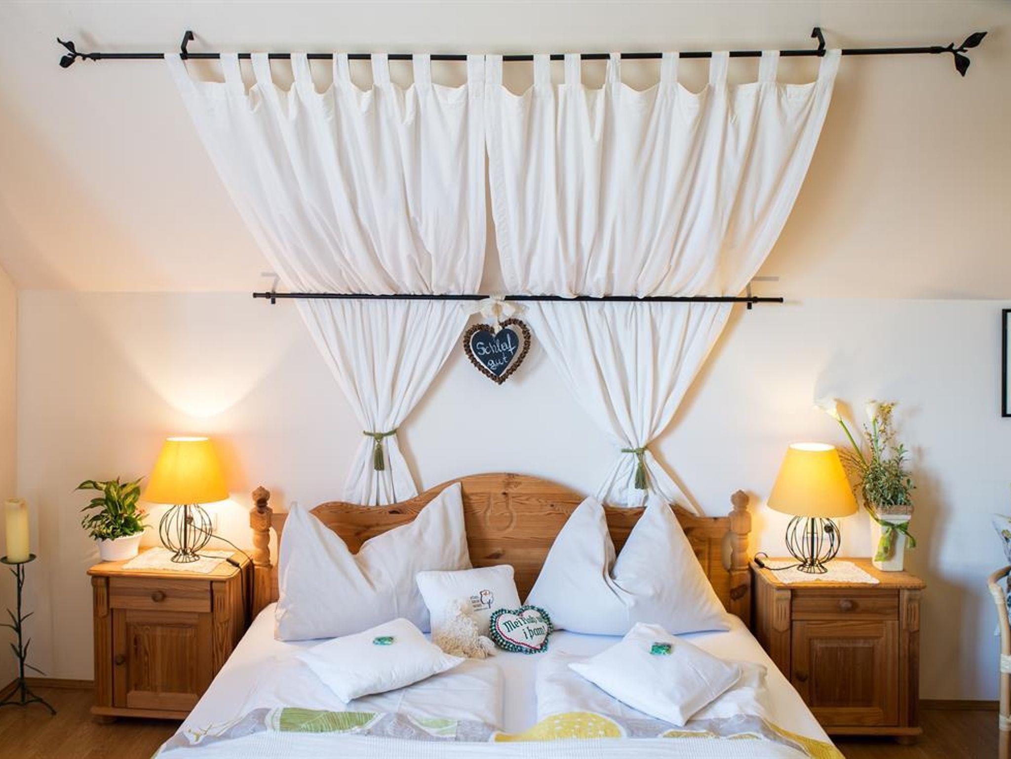 FamilienZimmer ( 1-4 Pers.) Individuell ausgestattet und liebevoll gestaltet, mit Doppelbett und DoppelHochbett oder ausziehbarer Doppelcouch, großteils mit Balkon bzw. Terrasse, Gartenblick, GrünRuhelage