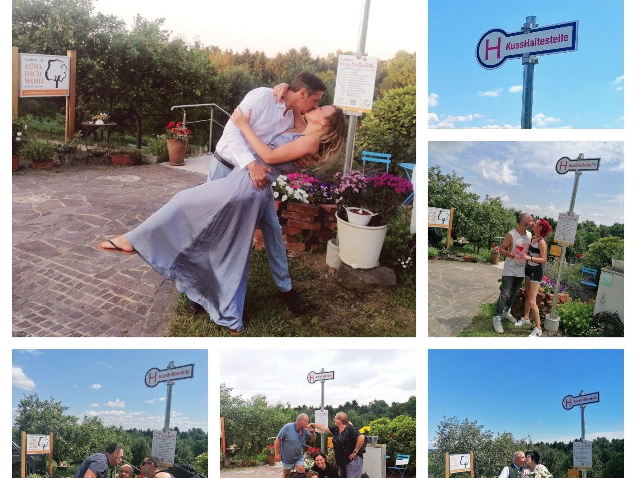 Unser beliebter Fotopoint : 1.und einzige (?) KUSSHALTESTELLE vor dem Haus