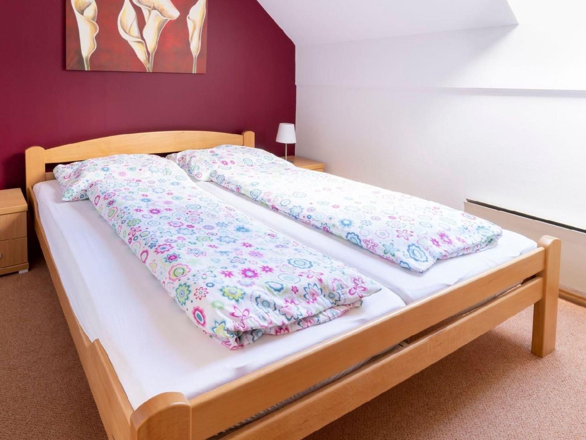 The flat on the upper floor exudes an inviting atmosphere and is ideally equipped for up to 4 people with two separate bedrooms. A fully equipped kitchen with fridge-freezer, small oven, microwave, toaster and kettle allows you to prepare your own meals. The interior is complemented by a comfortable living/dining room, a bathroom and high-quality crockery for a carefree stay.