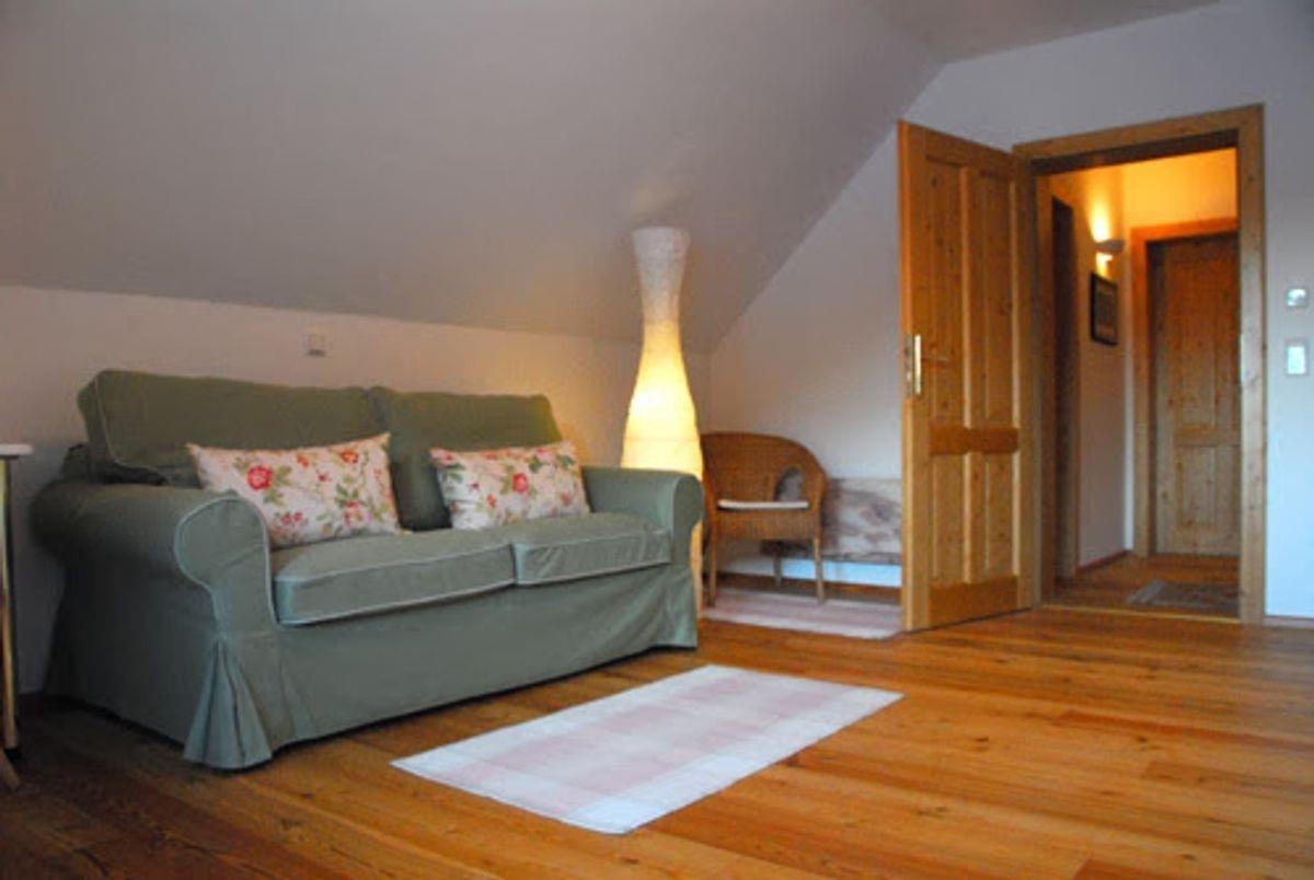 Der gemütliche Wohnraum mit Eckcouch lädt nach einem aktiven Tag zum Entspannen ein. SAT-TV und Radio sorgen für Unterhaltung. Beheizt wird das Ferienhaus mittels elektrischer Heizung.