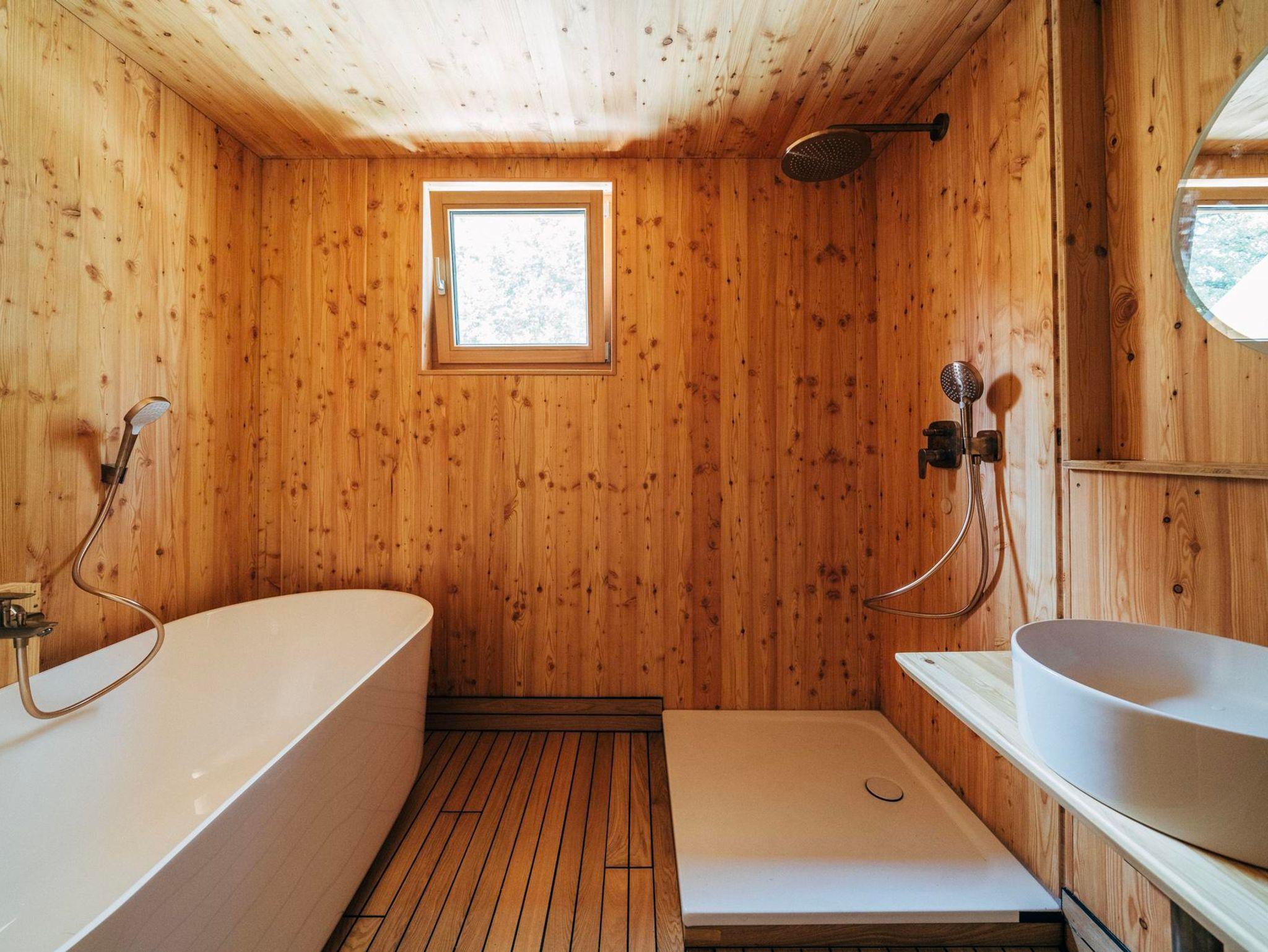 Ruby Red WOW View Die beste Entscheidung für Romantiker. Das große Badezimmer im Erdgeschoß verfügt über eine freistehende Badewanne für entspannte Stunden zu zweit. Im Erdgeschoß befindet sich die moderne Küche samt geräumigem Wohnraum, das erwähnte Bad und ein separates WC. Über eine Treppe gelangen Sie in den 1. Stock, wo das Schlafzimmer mit Traumblick durch die große Glasfront bezaubert. Wie alle Lodgen verfügt Ruby Red über eine tolle möblierte Terrasse, High Speed Internet, einer Grundausstattung an Wäsche und Geschirr sowie 3 Yogamatten. Designverliebte werden sich in dieser aus heimischem Holz und Glas erbauten Lodge besonders wohlfühlen.