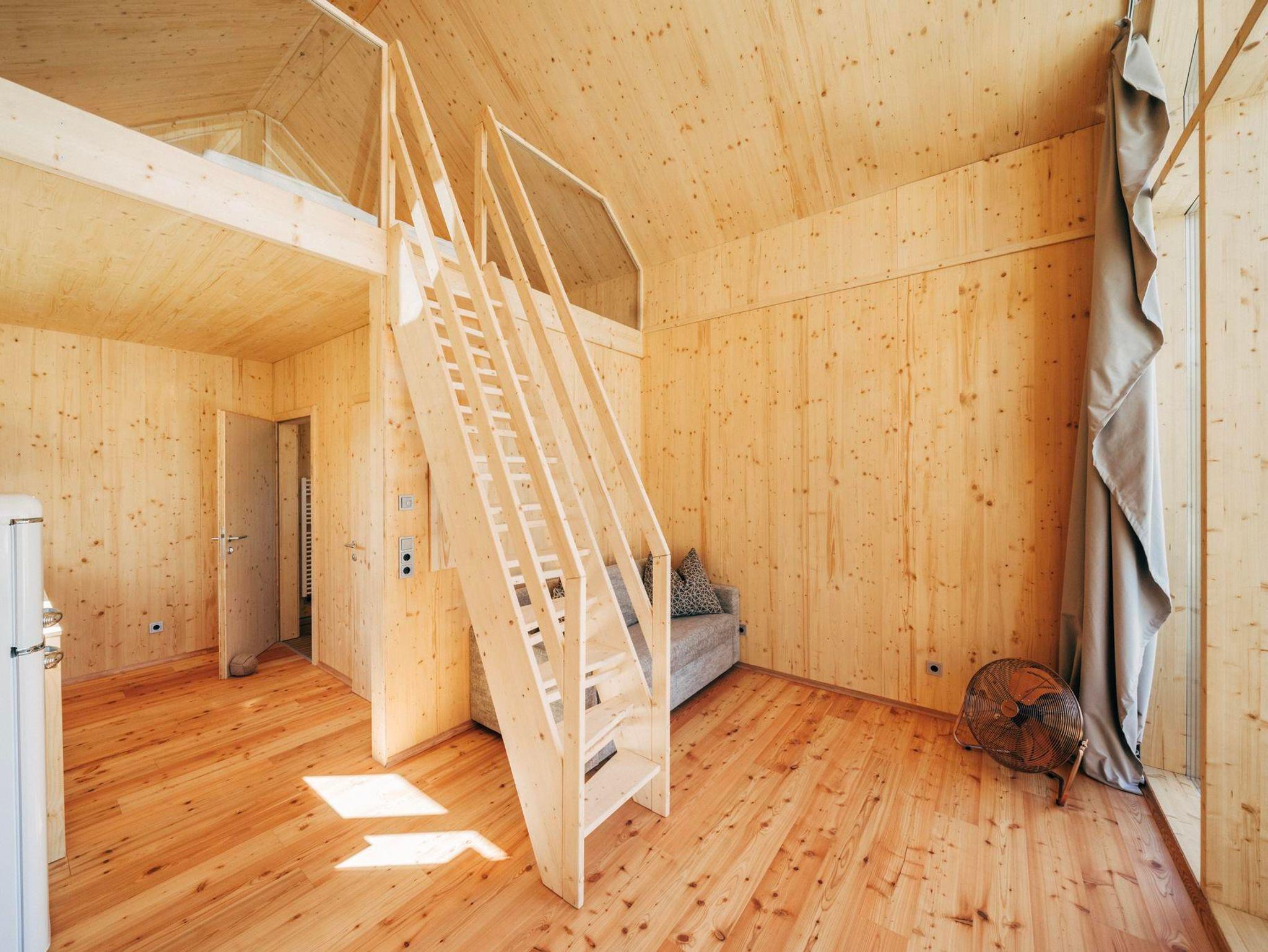 Salvia Green 34 Quadratmeter und dennoch reichlich Platz für vier Personen. Im Erdgeschoß befindet sich die moderne Küche samt geräumigem Wohnraum, das Badezimmer und ein separates WC. Über eine Treppe gelangen Sie in den 1. Stock, wo das Schlafzimmer mit Traumblick durch die große Glasfront bezaubert. Wie alle Lodgen verfügt Salvia Green über eine tolle möblierte Terrasse, WLAN, einer Grundausstattung an Wäsche und Geschirr sowie 3 Yogamatten. Ob als Familie, mit Freunden oder zu zweit. Entspannte Stunden im schönen Ambiente von Salvia Green sind garantiert!