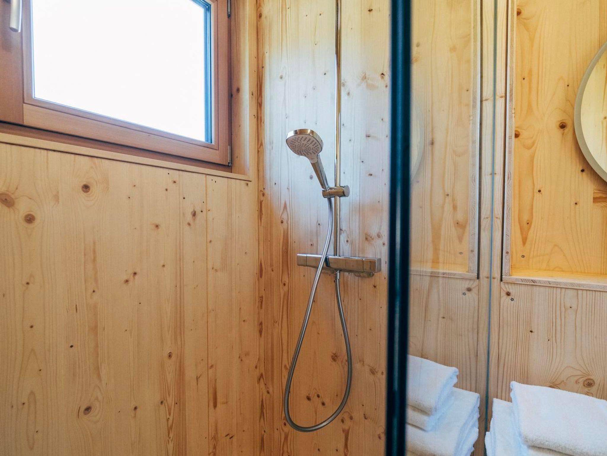 Salvia Green - View 34 Quadratmeter und dennoch reichlich Platz für vier Personen. Im Erdgeschoß befindet sich die moderne Küche samt geräumigem Wohnraum, das Badezimmer und ein separates WC. Über eine Treppe gelangen Sie in den 1. Stock, wo das Schlafzimmer mit Traumblick durch die große Glasfront bezaubert. Wie alle Lodgen verfügt Salvia Green über eine tolle möblierte Terrasse, WLAN, einer Grundausstattung an Wäsche und Geschirr sowie 3 Yogamatten. Ob als Familie, mit Freunden oder zu zweit. Entspannte Stunden im schönen Ambiente von Salvia Green sind garantiert!