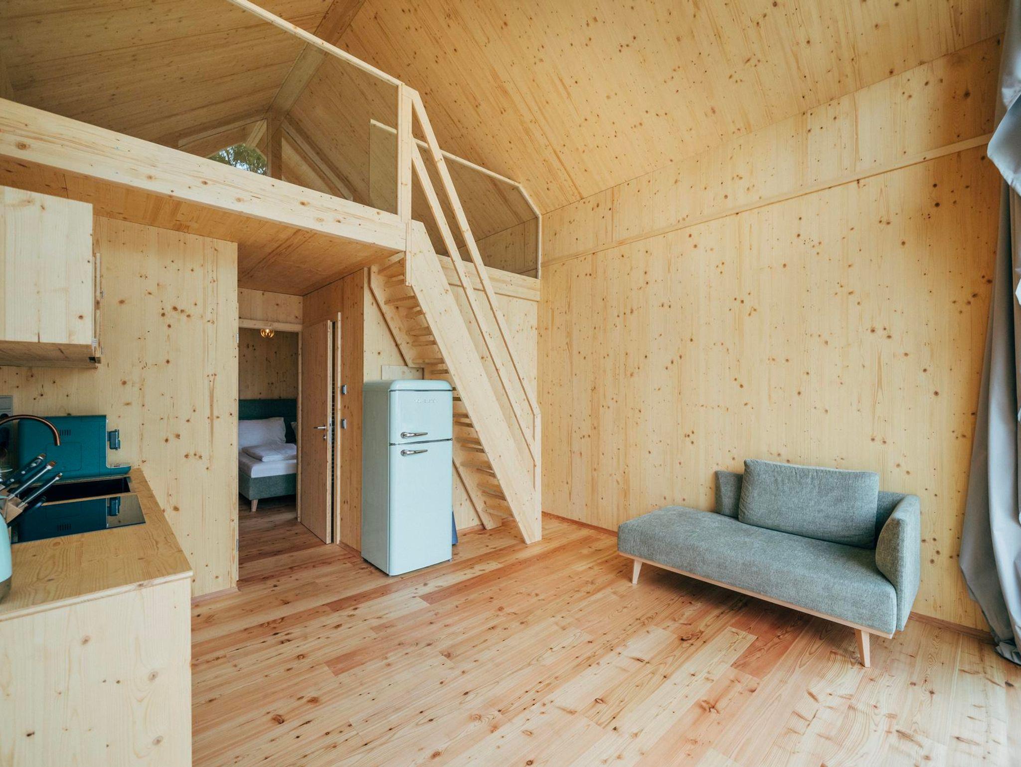 Sunny Celeste - View View Sunny Celeste ist die größte aller Lodgen. Hier stehen 50 Quadratmeter auf zwei Ebenen für grenzenlose Freiheit und viel Raum, dazu 10 qm überdachte Terrasse. Im Erdgeschoß befindet sich die moderne Küche samt geräumigem Wohnraum, ein Schlafzimmer, Bad und separates WC. Über eine Treppe gelangen Sie in den 1. Stock, wo ein weiteres Schlafzimmer mit Traumblick durch die große Glasfront bezaubert. Wie alle Lodgen verfügt Sunny Celeste über eine großzügig möblierte Terrasse, High Speed Internet, einer tollen Ausstattung an Wäsche und Geschirr sowie 3 Yogamatten. Das moderne, zeitlos schöne Design aus Holz und Glas fügt sich wunderbar in die Natur von Döbriach ein.