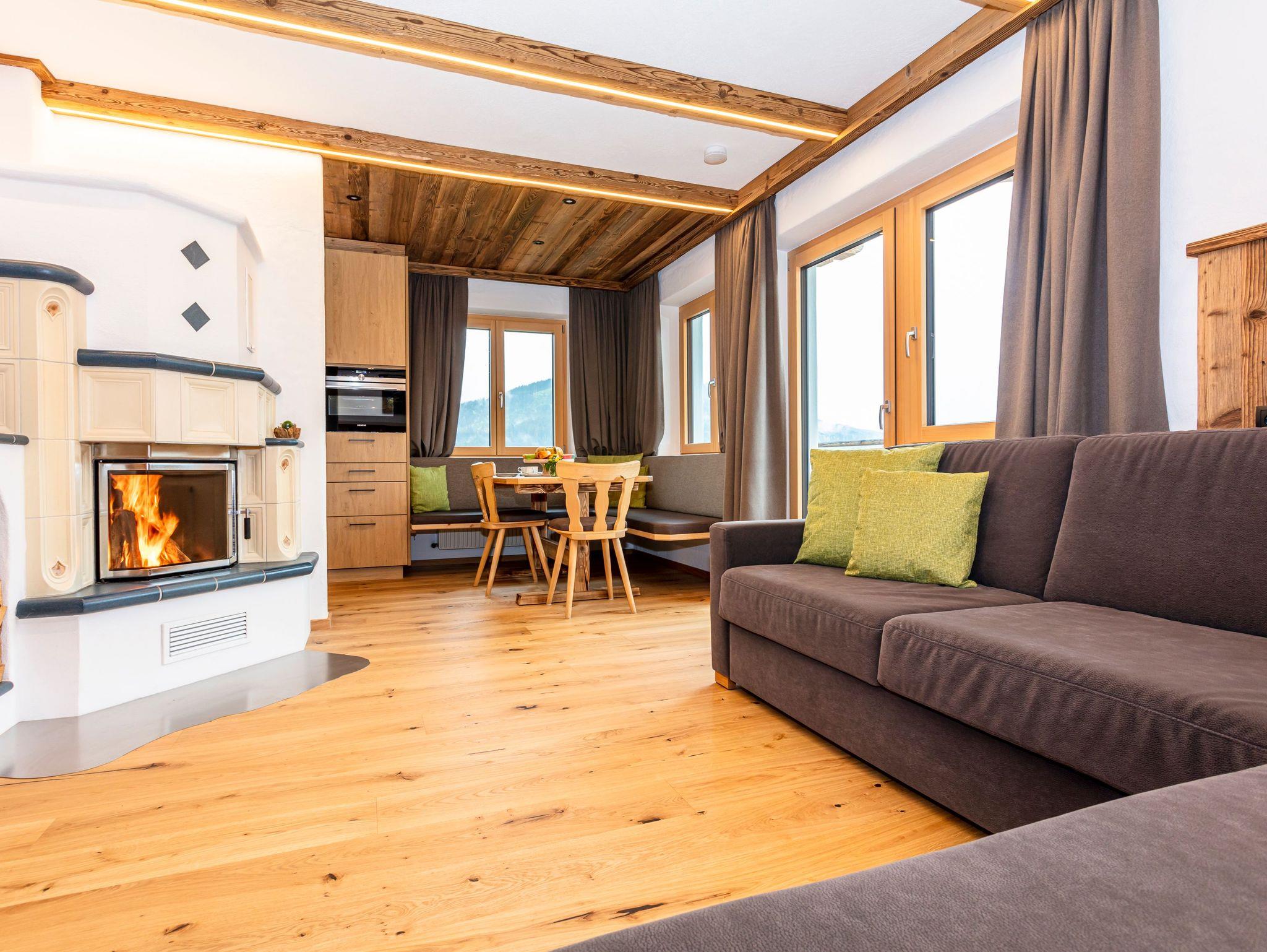 Wohlfühlambiente, in dieser Wohnung genießen Sie den Sonnenaufgang mit herrlichen Blick auf Fieberbrunn, die Buchensteinwand und den Spielberg. Im Wohnzimmer befindet sich ein gemütlicher Kachelofen mit Glastüre, zwei getrennten Schlafzimmern, komplett eingerichteter Küche mit Kaffeemaschine und Wasserkocher, Geschirrspüler und E-Herd mit Backofen, gemütliche Essecke, separater Wohnbereich mit Wohnlandschaft, FLAT-TV, Radio, gratis WLAN, Dusche/WC, Flur mit Garderobe und Balkon große Sonnenterrasse.