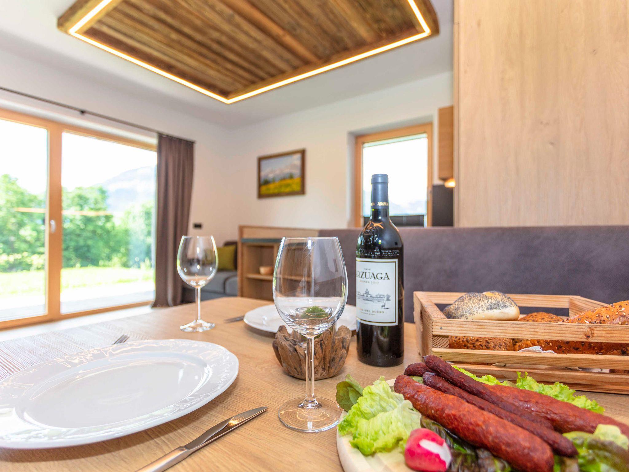 Alle Apartments verfügen über einen Balkon/Terrasse (Gartengarnitur, Liegestühle, Griller) mit Blick auf die Berge, vollausgestattete Küche mit Essbereich, Flachbild-TV mit Sat-Empfang, Internetanschluss mit Kabel gratis sowie Badezimmer mit Dusche und WC, Haartrockner, Kosmetikspiegel und Seife.