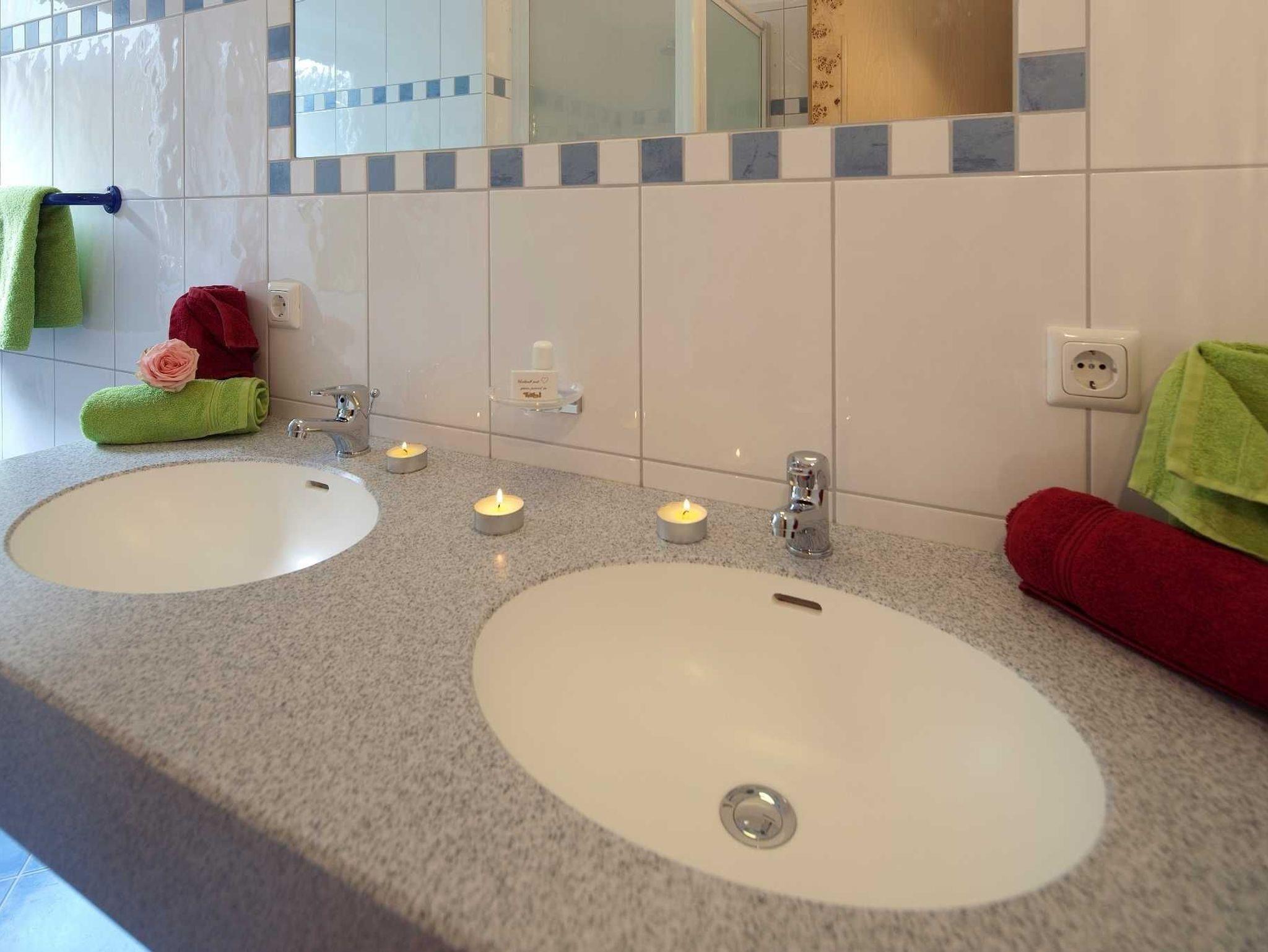 Jede Wohnung verfügt über 2 Schlafzimmer mit Doppelbetten (inkl.Bettwäsche), Safe, eine Wohnküche (24qm) mit ausziehbarer Doppelcouch, Geschirrspüler+gratis Reinigungstaps, Kaffeemaschine, Toaster, Wasserkocher, Mikrowelle, Backofen, Kühlschrank mit Gefrierfach, genügend Koch - u. Essgeschirr, Geschirrtücher, gemütliche Essecke, Kabel-TV, Leselampe, Telefon, Internetanschluss und Radio. Die Badezimmer sind mit Dusche, Doppelwaschtisch, Hand - u. Badetüchern, Kosmetikspiegel und einem Fön ausgestattet.