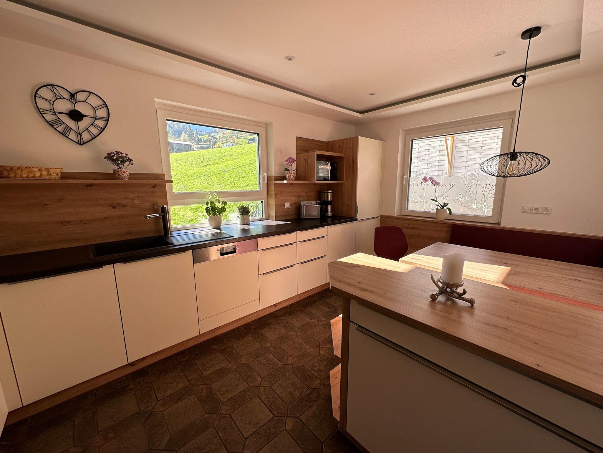 - neue Küche mit Ceran-Kochfeld, Mikrowelle, Backofen, Geschirrspüler, 2 Kühlschränken, Toaster, Kaffeemaschine und Sitzecke
