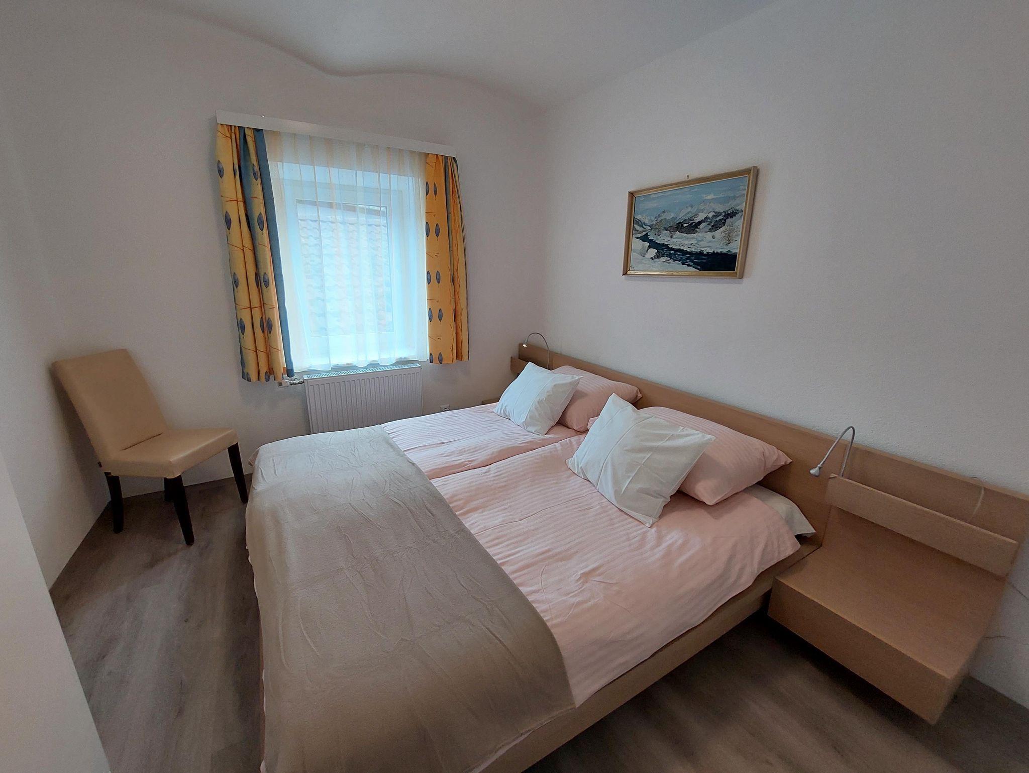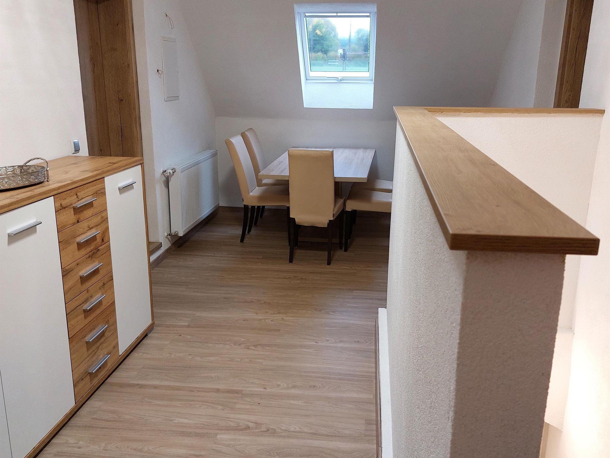 Die Ferienwohnung 1 mit 95 m² befindet sich im zweiten Stock mit separaten Zugang (Außenstiege) und hat einen kleinen Balkon mit Tisch und Sessel.