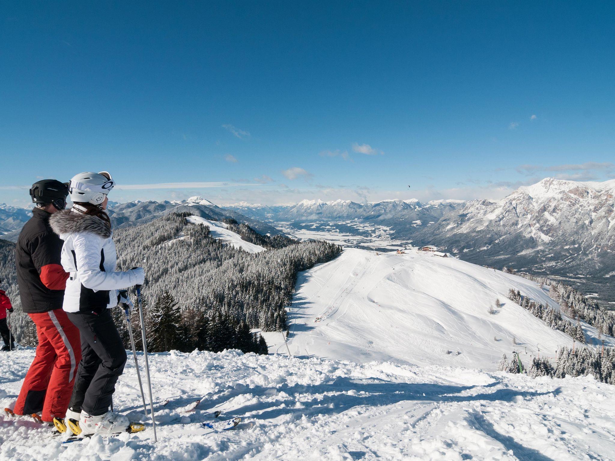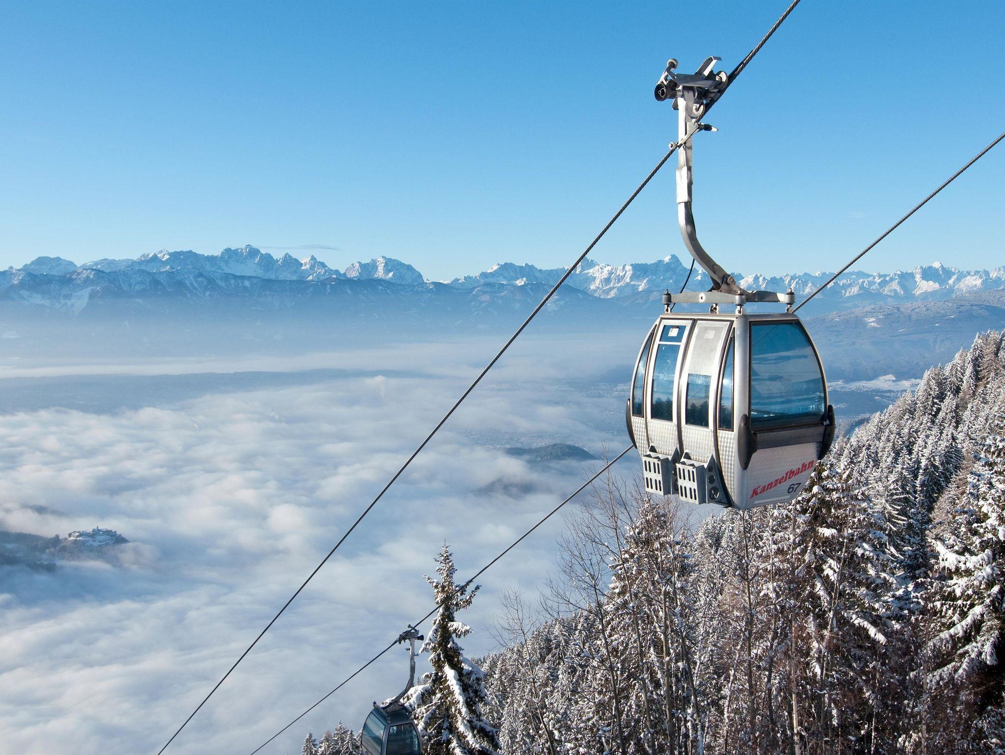 Viel Skispaß gibt es auf der Gerlitzen Alpe mit der Kanzelbahn (14km), oder am Dreiländereck (21km). Tip: für Tourengeher und Winterwanderer ist der Dobratsch optimal (9km).