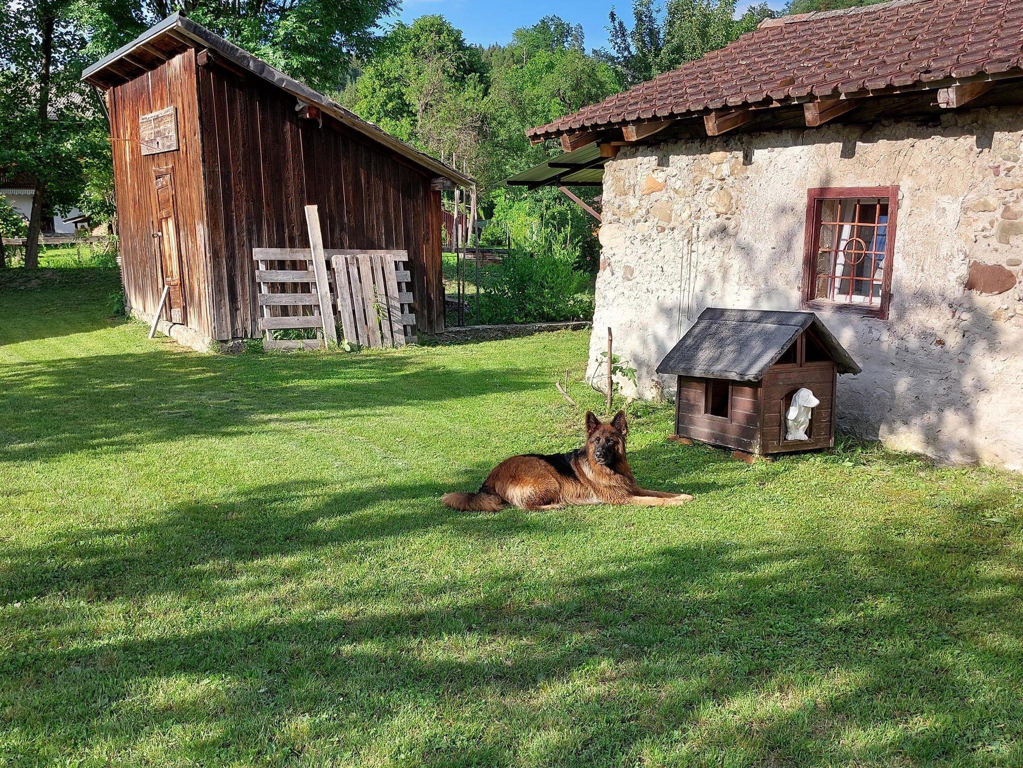 Für Hunde steht eine Hundehütte im Garten falls sich ein Hund ein schattiges oder warmes Plätzchen sucht.