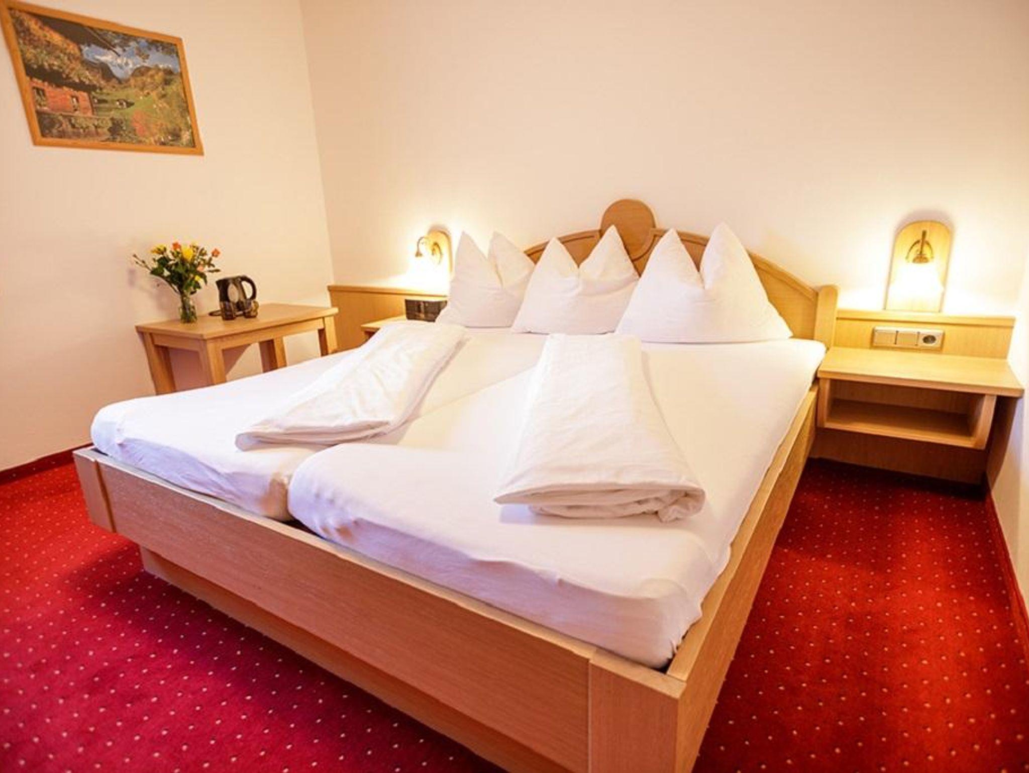 Schönes Doppelzimmer mit 2 möglichen Zustellbetten oder einer Ausziehcouch.