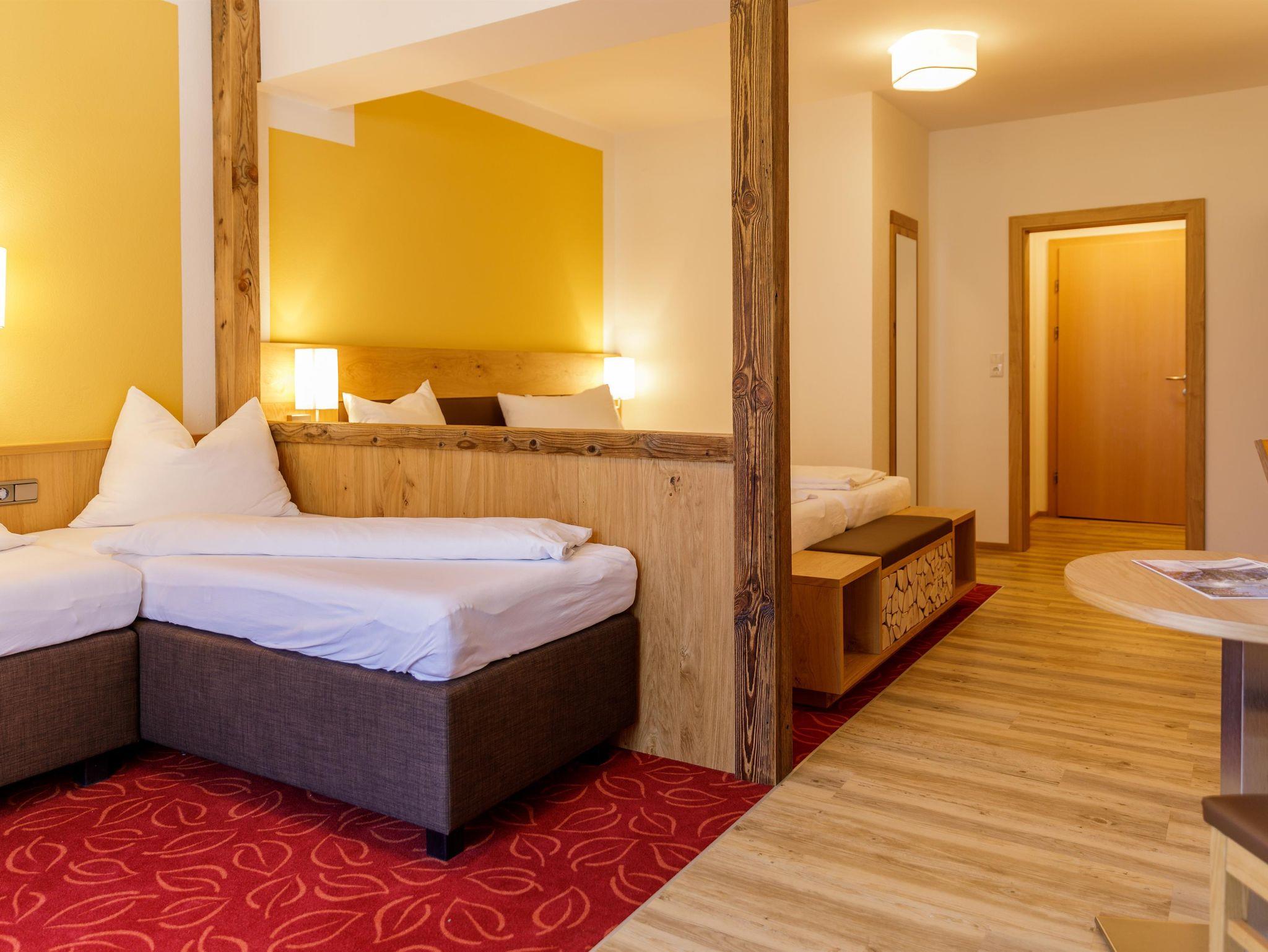 Der großzügig gestaltete Wellnessbereich, mit Zirben-Sauna, Bio Kräutersauna, Infrarotkabine, Dampfbad, Erlebnisduschen und gemütlichen Almwiesen-Ruheräumen, lässt sie nach einem erlebnisreichen Tag zur Ruhe kommen.