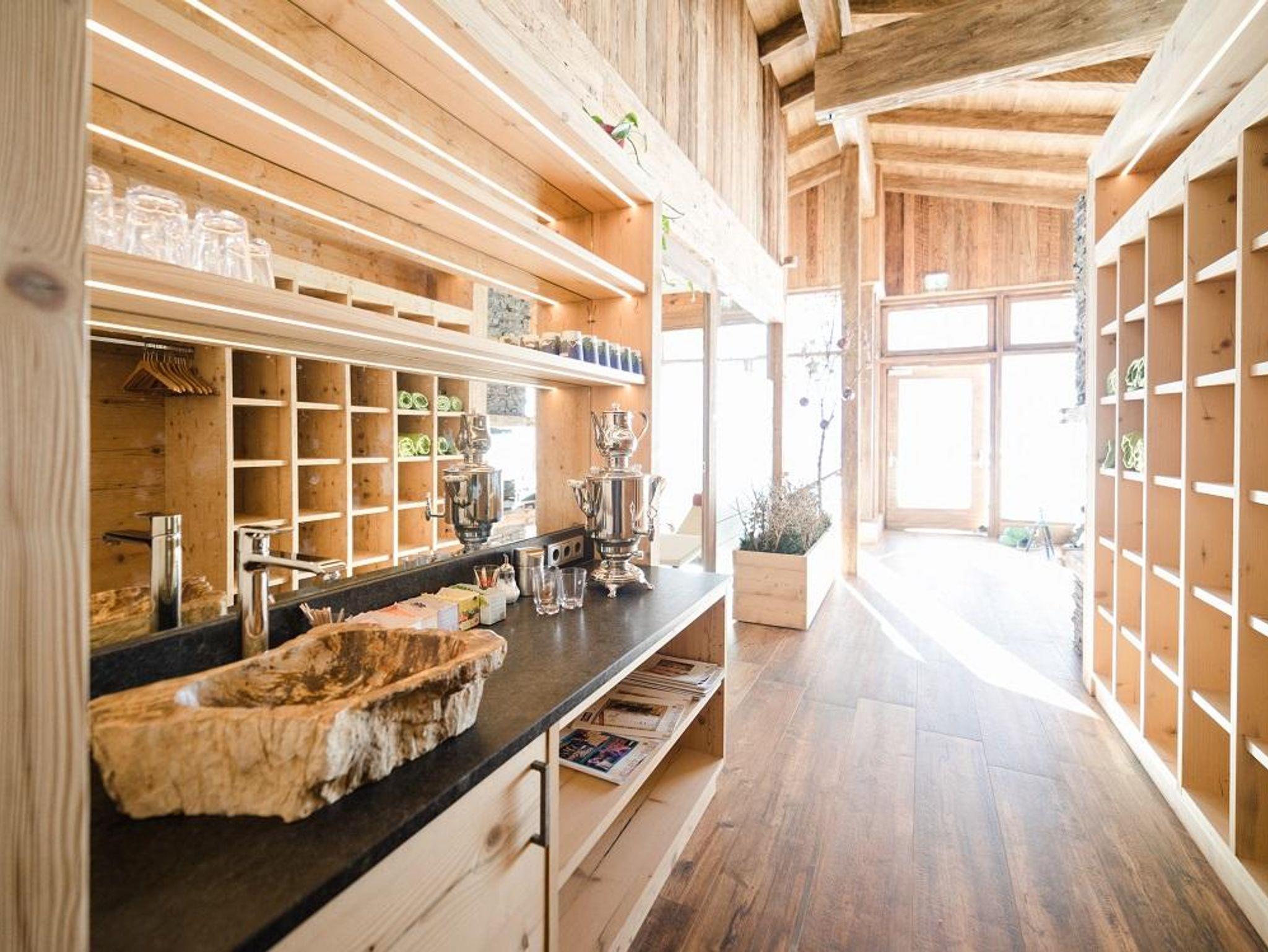 Der großzügig gestaltete Wellnessbereich, mit Zirben-Sauna, Bio Kräutersauna, Infrarotkabine, Dampfbad, Erlebnisduschen und gemütlichen Almwiesen-Ruheräumen, lässt sie nach einem erlebnisreichen Tag zur Ruhe kommen.