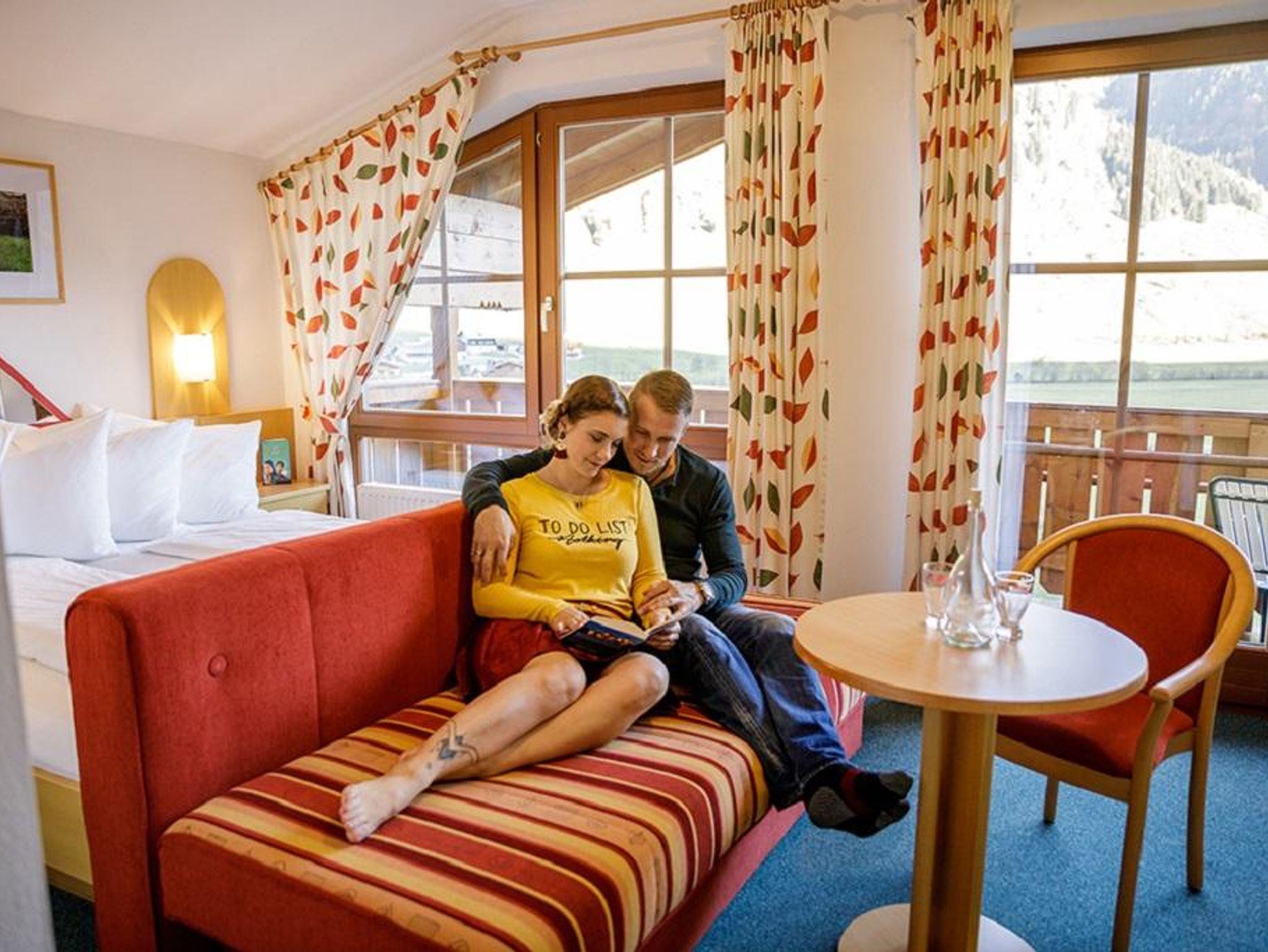 Der großzügig gestaltete Wellnessbereich, mit Zirben-Sauna, Bio Kräutersauna, Infrarotkabine, Dampfbad, Erlebnisduschen und gemütlichen Almwiesen-Ruheräumen, lässt sie nach einem erlebnisreichen Tag zur Ruhe kommen.