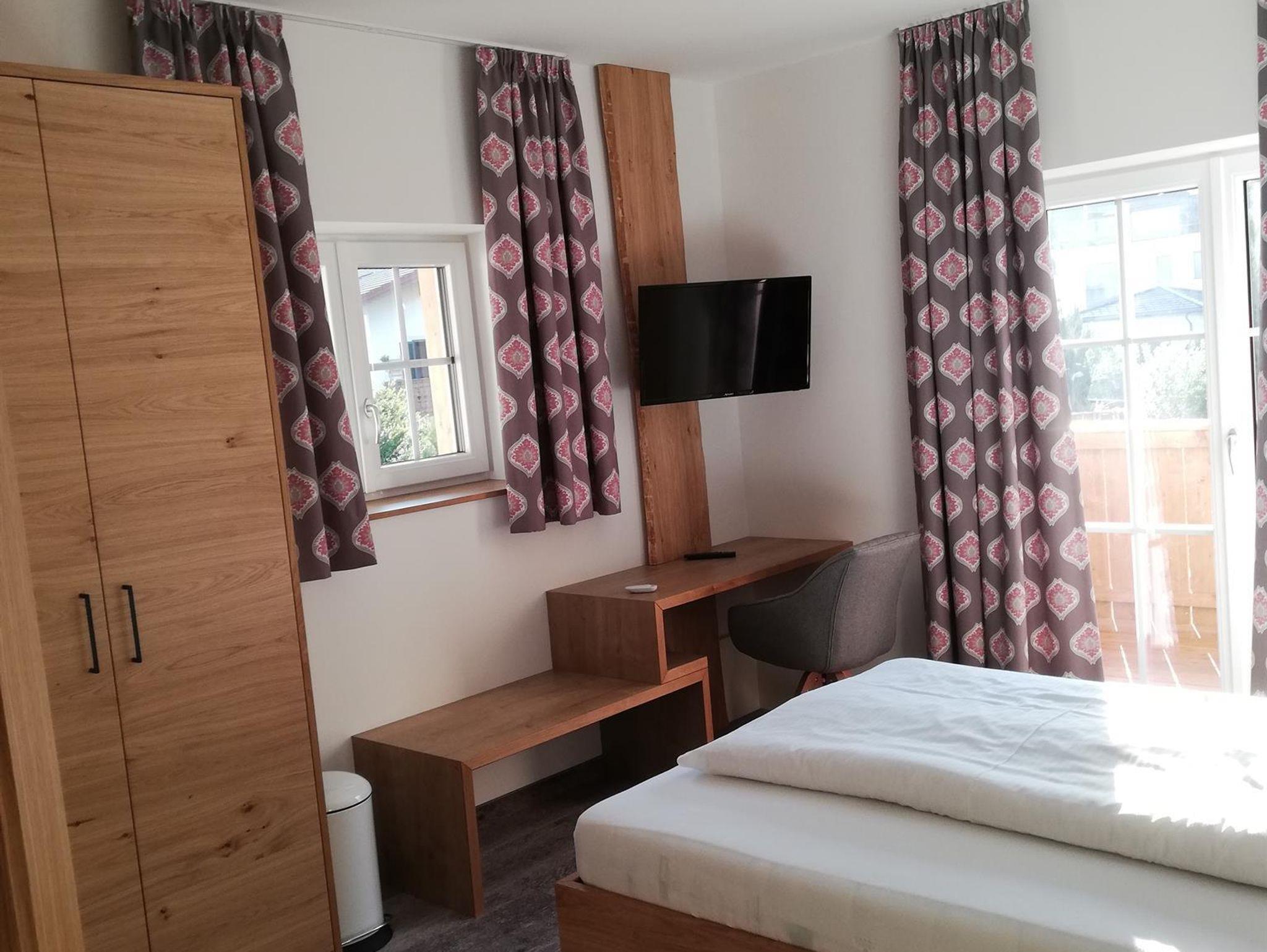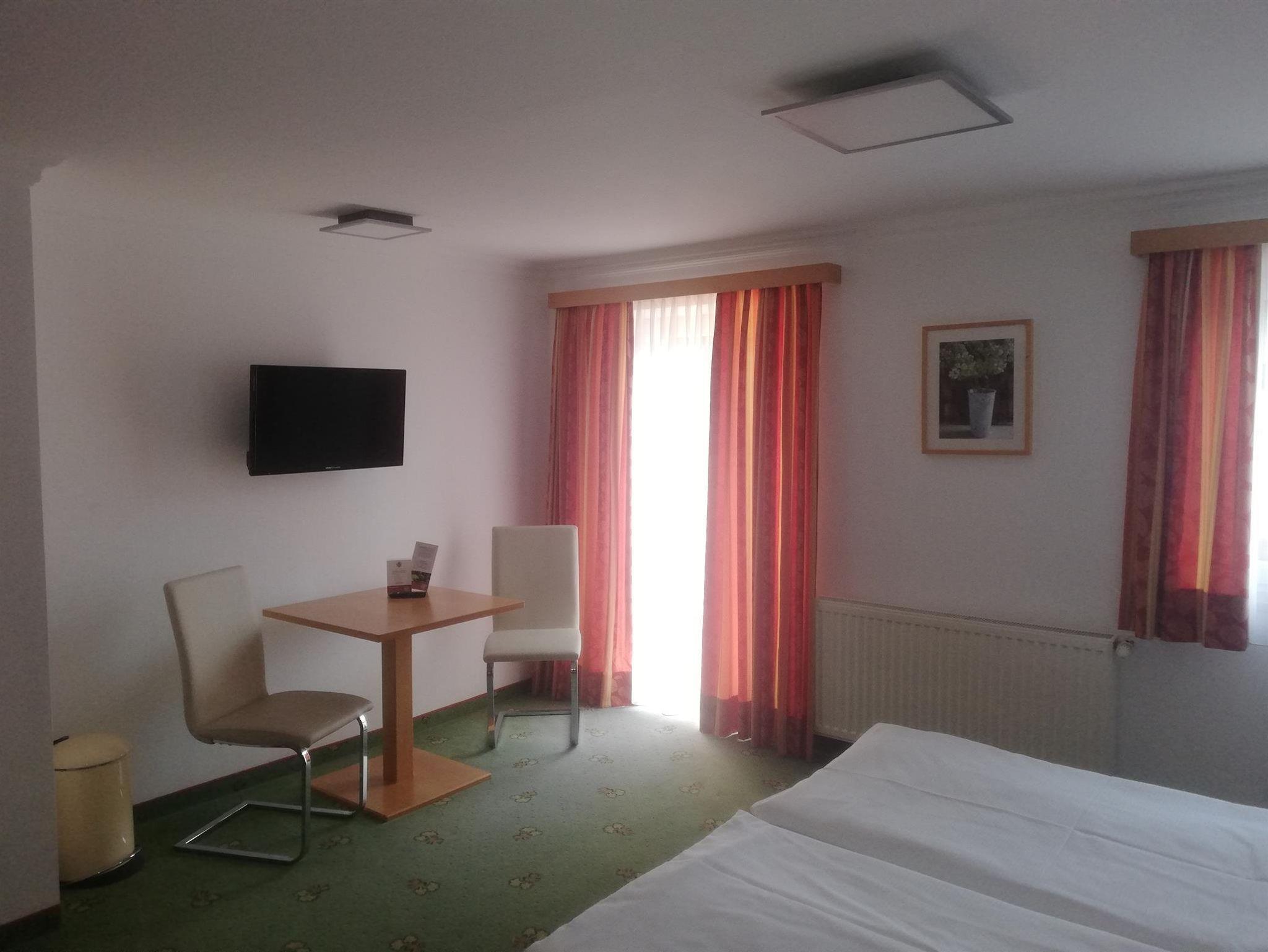 Alle Zimmer sind mit Kabel TV, Balkon, Dusche oder Bad und WC ausgestattet. Oben sehen Sie eines unserer Doppelzimmerkategorien. Kinderstuhl, Gästekühlschrank vorhanden.
