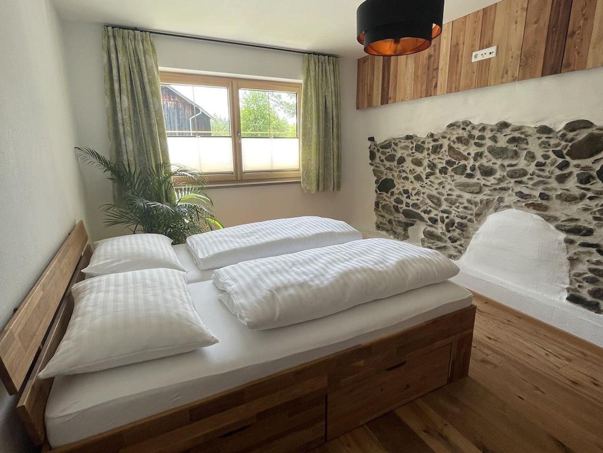 Die frühere Tenne, die an das anliegende Familienhaus anschließt, wurde abgerissen und komplett neu aufgebaut. Diesen Anbau schmückt ein riesengroßer Garten mit frischen Kräutern, Gemüse und vielen Blumen, die zum Verweilen einladen.