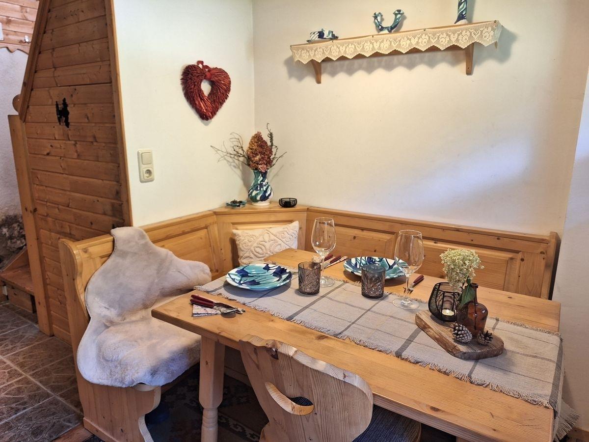 Die gut ausgestattete Küche mit Holzherd, Mikrowelle und Kaffeemaschine lädt zum gemeinsamen Kochen ein. Draußen erwartet dich ein großer Garten mit Liegewiese, Schaukel, Gartenmöbeln und Grill – perfekt zum Entspannen an warmen Tagen. SAT-TV, WLAN und der urige Charme der Hütte machen sie zum idealen Ort für eine romantische Auszeit in den Kärntner Bergen.