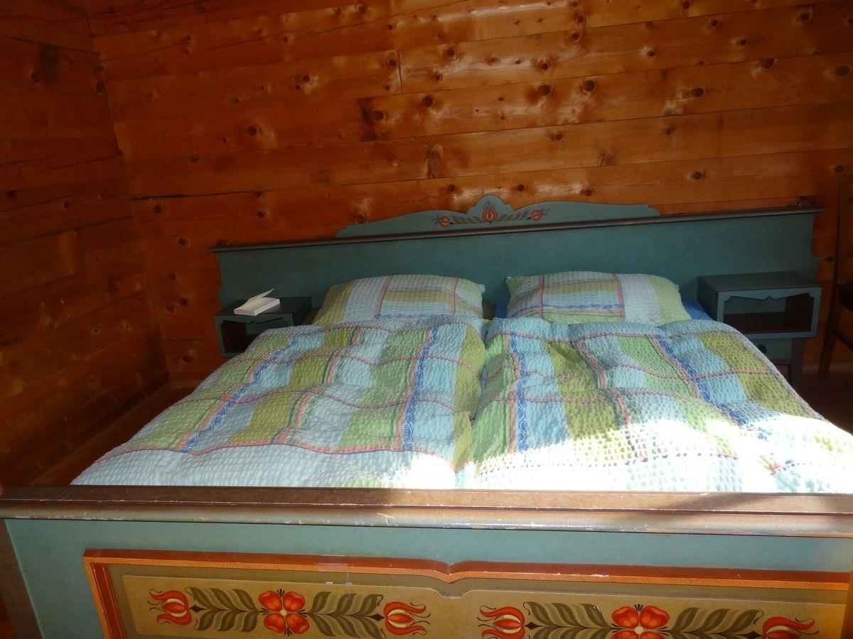 Geheizt wird klassisch mit Holz, und die Beleuchtung erfolgt über Solarenergie – Strom gibt es hier bewusst nicht, um das ursprüngliche Hüttenfeeling zu bewahren. Draußen laden Gartenmöbel und ein Grill zu geselligen Stunden mit Panoramablick ein. Das Erd- und Obergeschoss sind von außen begehbar und unterstreichen den besonderen, traditionellen Charakter dieser Hütte.