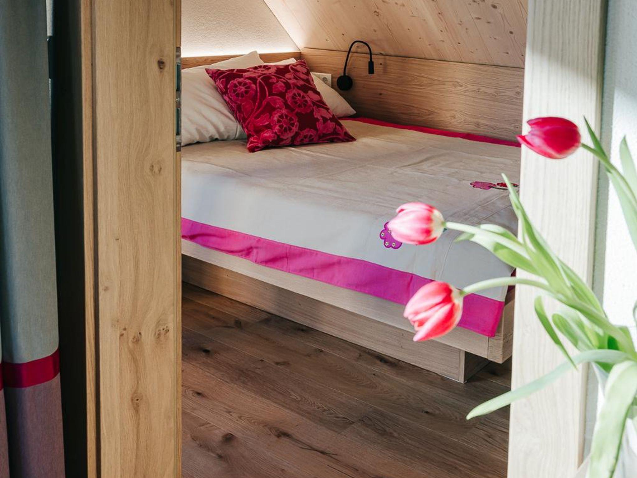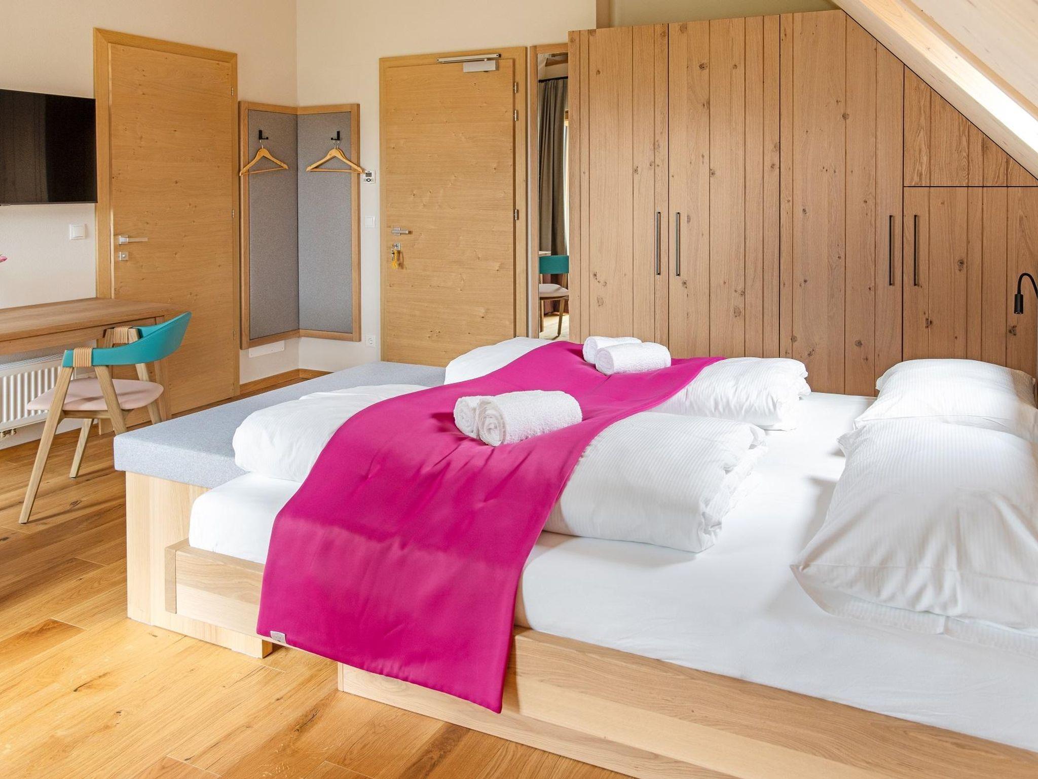 Erleben Sie pure Entspannung in unserem neuen Zimmer Panoramablick, wo Komfort auf Natur trifft. Wie alle unsere Räumlichkeiten ist auch dieses Zimmer mit sorgfältig ausgewählten Naturmaterialien ausgestattet, die eine beruhigende und gesunde Atmosphäre schaffen.