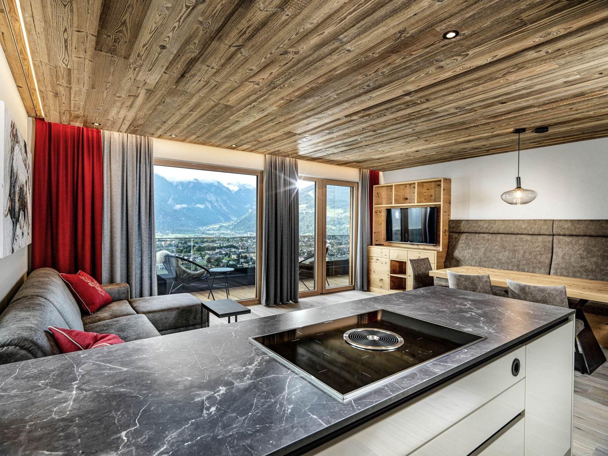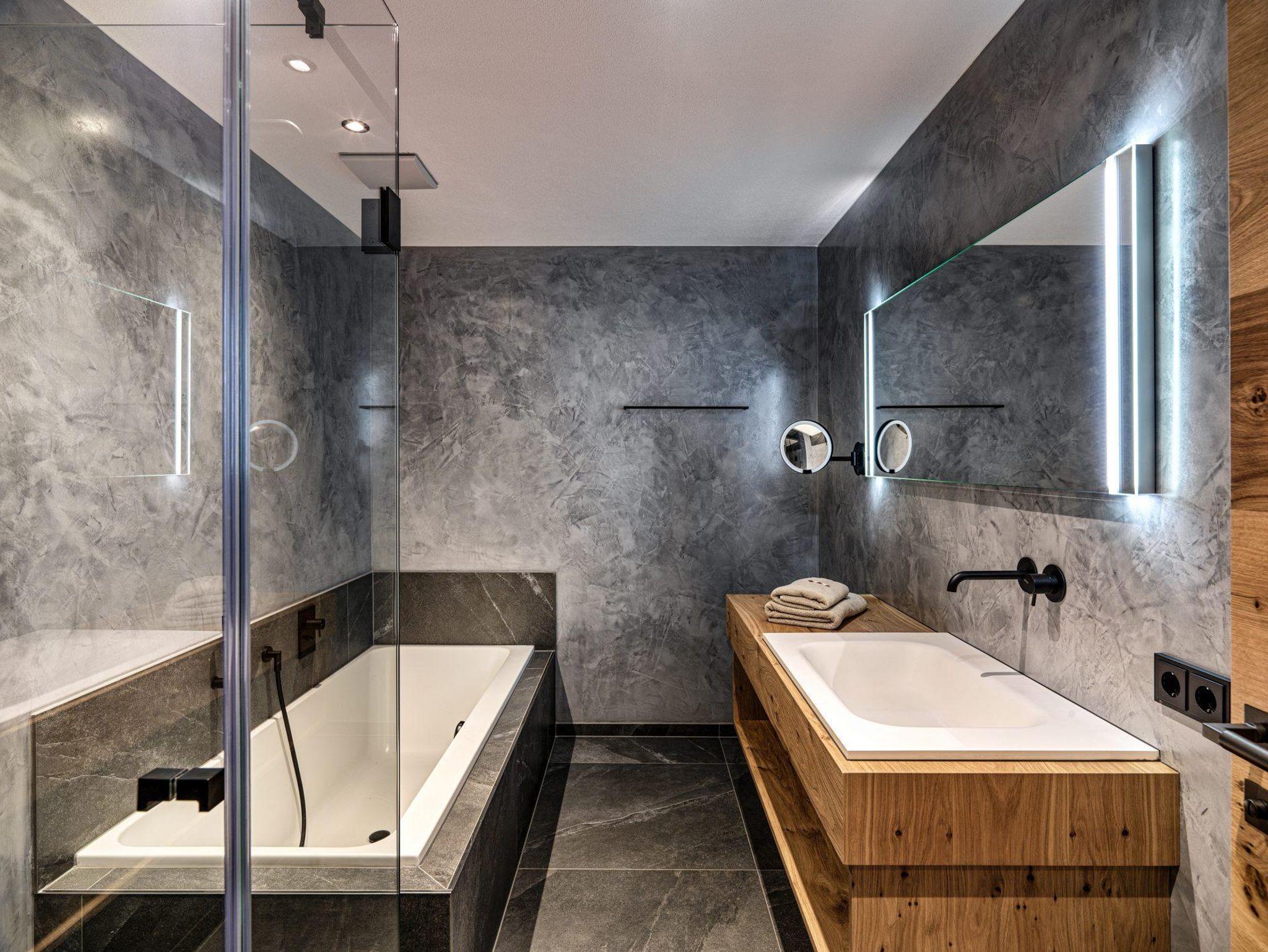 Das Apartment Böses Weibele bietet Platz für 2-4 Personen und ist mit einer bequemen, ausziehbaren Schlafcouch auf 6 Personen erweiterbar. Pro Schlafzimmer gibt es ein separates Badezimmer sowie WC.